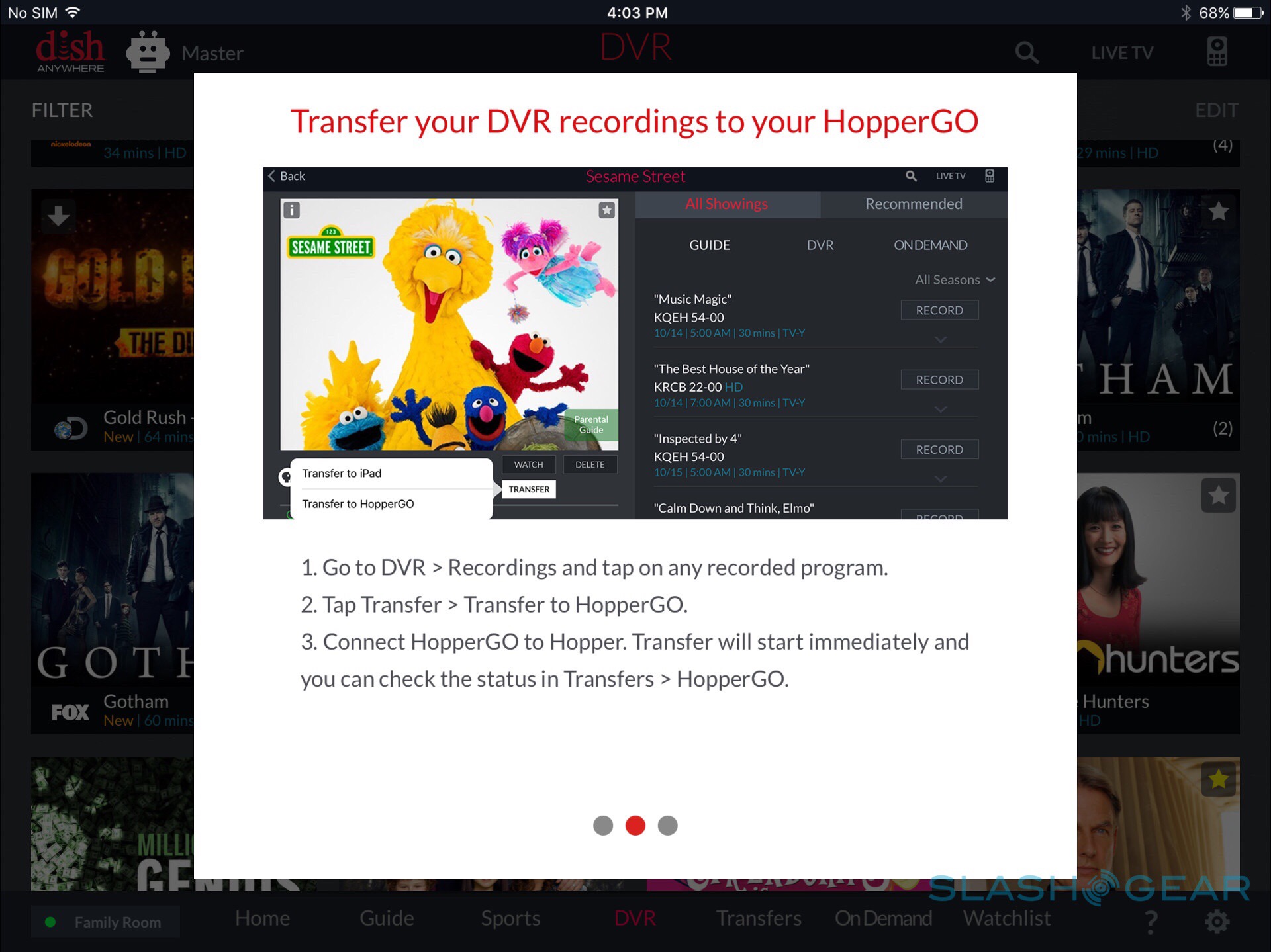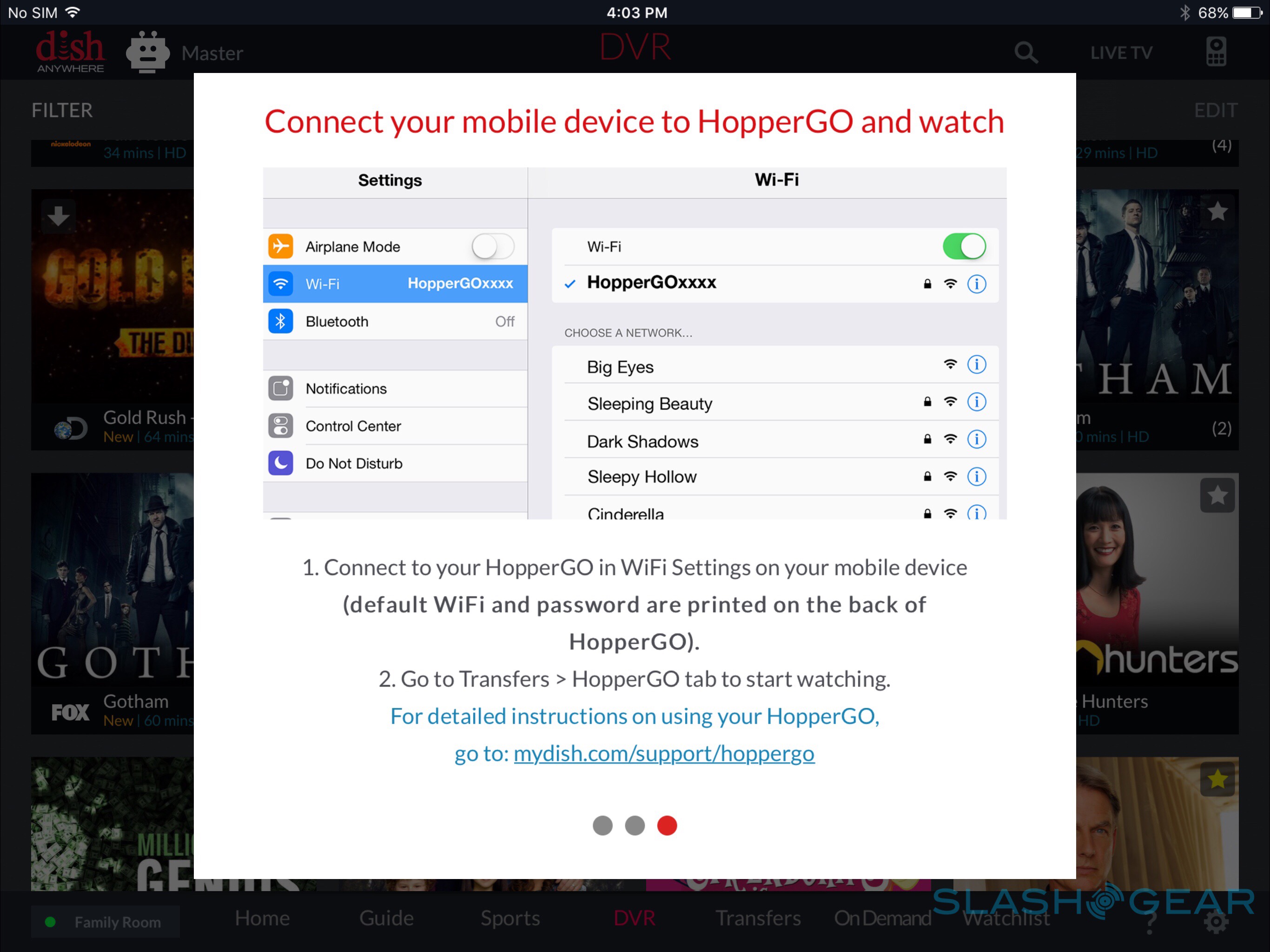 In case it wasn't obvious yet, the HopperGO's simple design matches its simple purpose in life, to let you take your DISH recorded movies and TV shows wherever you go. As long as you have your HopperGO with you, of course. Setup is dead simple and DISH provides step-by-step instructions along the way. Simply plug in the HopperGO to the DVR with a cable and wait for confirmation on your TV (you do have one connected to your Hopper DVR, right?). Once that's ready, go to you DISH Anywhere app and connect to the HopperGO's ad hoc Wi-Fi network to begin selecting which recorded videos you want transferred to the HopperGO. It's as easy as that!