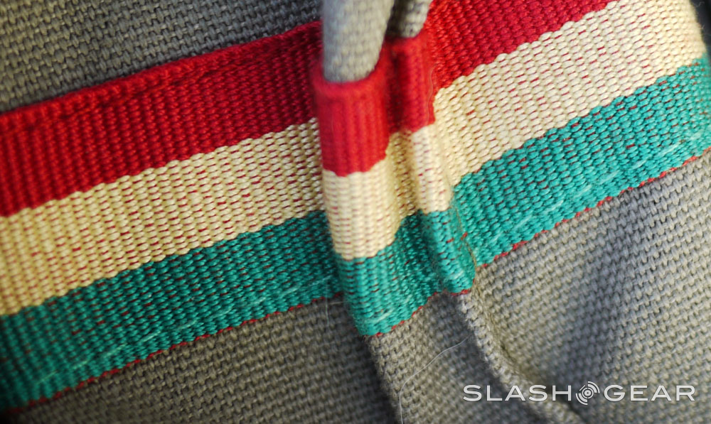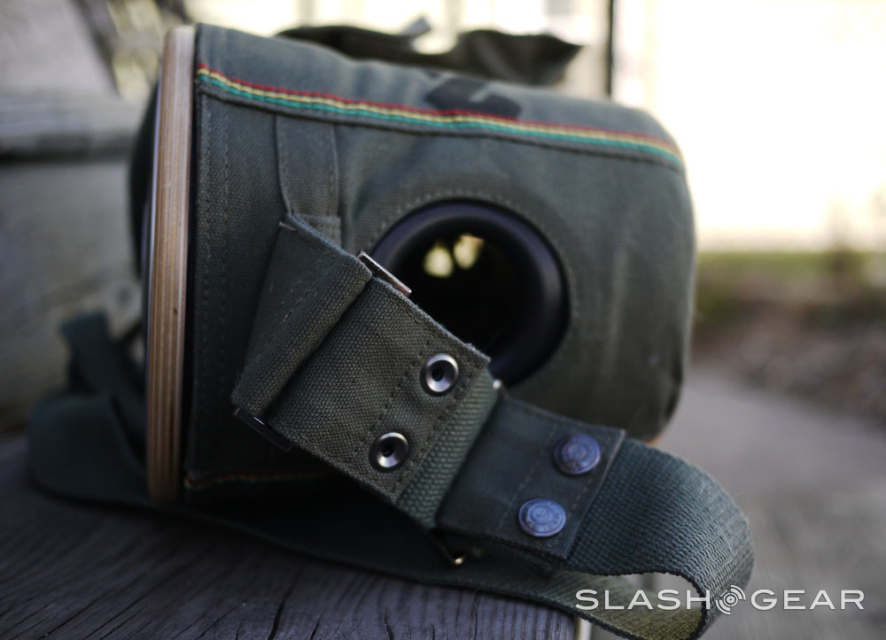 This month we've gotten the opportunity take a peek at the House of Marley Bag of Rhythm, a massive carry-along amplifier for your iPhone and/or any other device with a headphone jack. The idea here is that you carry this beast along with you wherever you want to go jamming, and turn the twin 1-inch tweeters and 4.5-inch high-definition woofers out on the world to bring sunshine and positivity to your friendly neighbors. What you'll get is an aesthetically (and acoustically) lovely unique piece of equipment that'll fit any one of your iPods just perfectly.