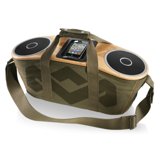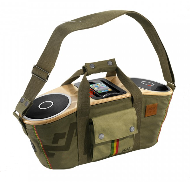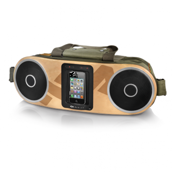If you attended CES 2012, you very well may have happened upon this delightful device being carried around by members of the House of Marley: the Bag of Rhythm. This harvest-colored beast is essentially a boom box that works natively with your iPod Touch and iPhone, has an Aux input to connect to essentially any other small media device, and strings over your shoulder to blast beats right up into the atmosphere. This sack and wood-housed set of speakers has the look and materials of a modern day block rocker – and it's officially on sale today!