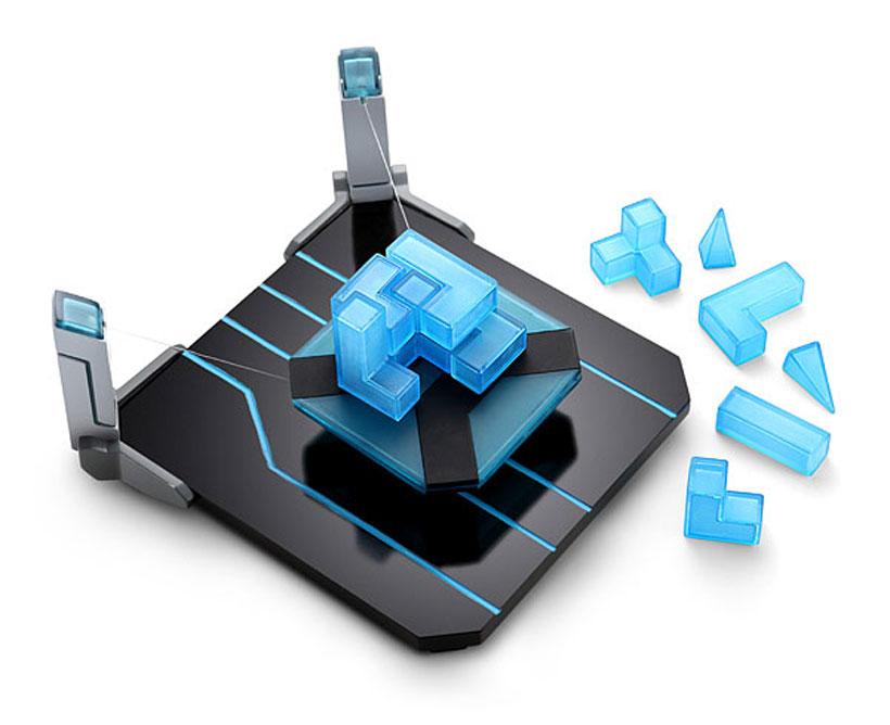 Those blocks include six pyramids, six corners, six l-shapes, and six straight pieces. Five rare Earth magnets make the small 3-inch square platform float over the 6-inch square base. A 6-sided die is included with the game. You can pick the game up for $29.99 at ThinkGeek now.