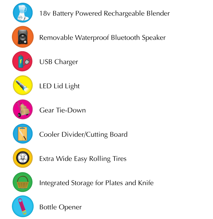 There's a built-in ice crushing blender. Use it for smoothies, margaritas, or mixing up ice with abandoned drinks from around the part!*