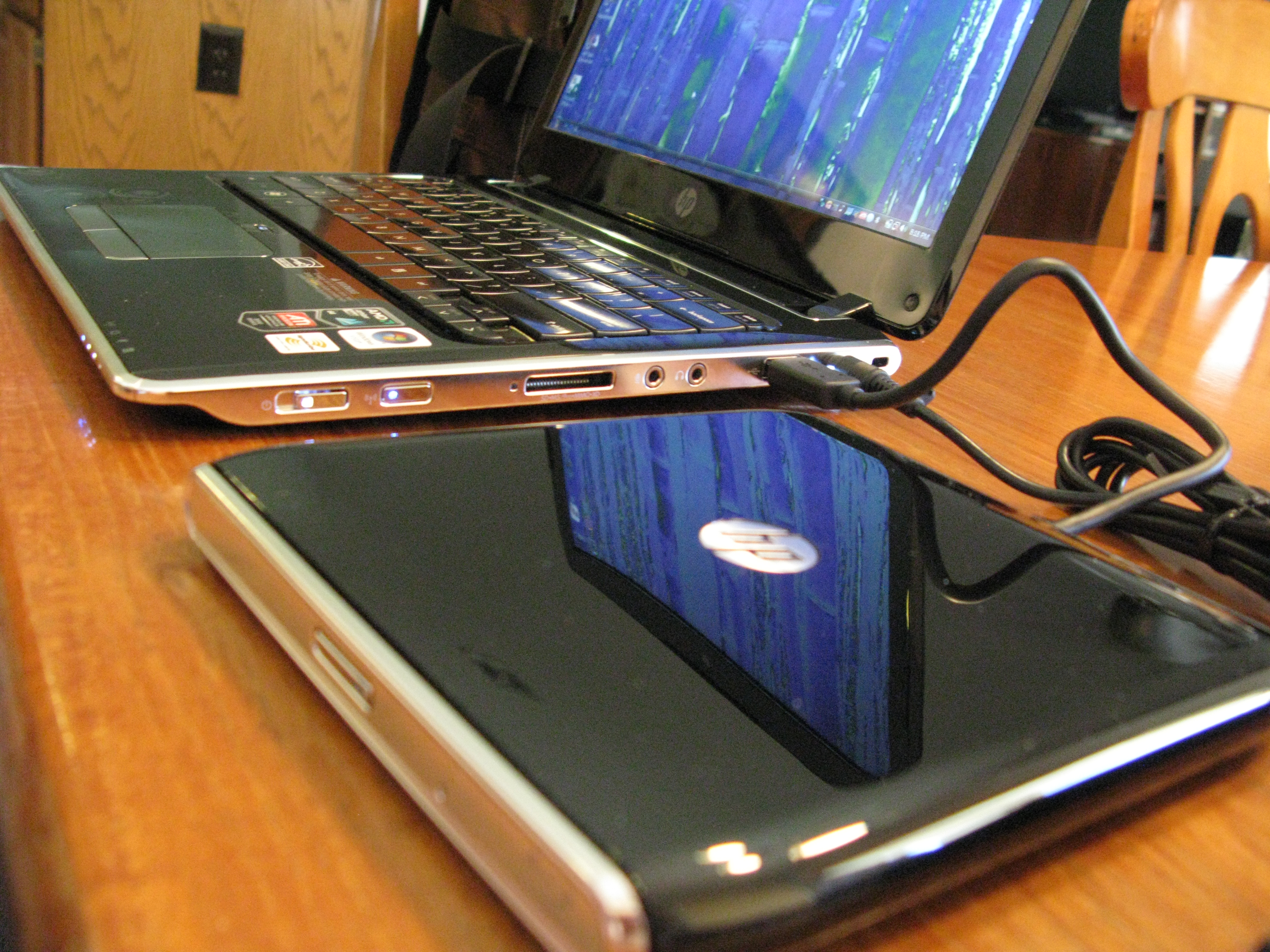 We haven't seen AMD processors in netbooks or ultra-portables until now, and the accompanying graphics power is promised to offer some serious boosts in speed. We're in the process of benchmarking our dv2 against an Atom based machine, so we'll have the results for you there. We got the chance to talk to AMD once they sent us the machine, and they had some good points about designing the Yukon for larger machines, and pushing it down into smaller portables. We'll see how the Yukon delivers with the benchmark results. Until then, here's a preview of the HP dv2 and the amazingly small USB Blu-ray drive.