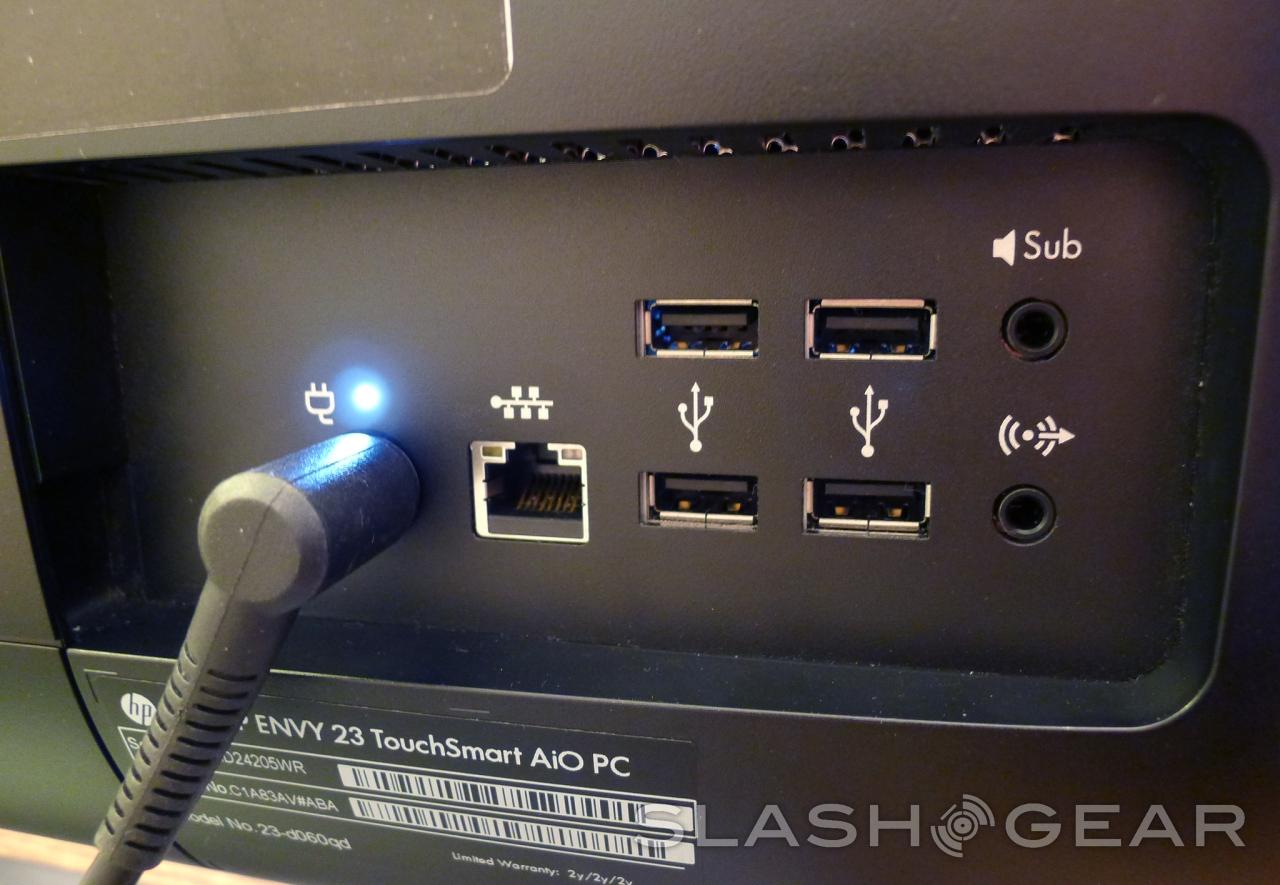 As far as ports go, you have two USB 3.0 ports on the left side, along with a SD card slot and microphone and headphone jacks. On the back, there are four USB 2.0 ports, ethernet, and a nifty subwoofer-out port that allows for deeper sound out of the relatively puny speakers that are equipped with the ENVY 23 TouchSmart. Then, on the right side, there's a lone HDMI port for connecting to an Xbox 360, PlaySation 3, or any other HDMI-capable device that can use the computer as a monitor or display.