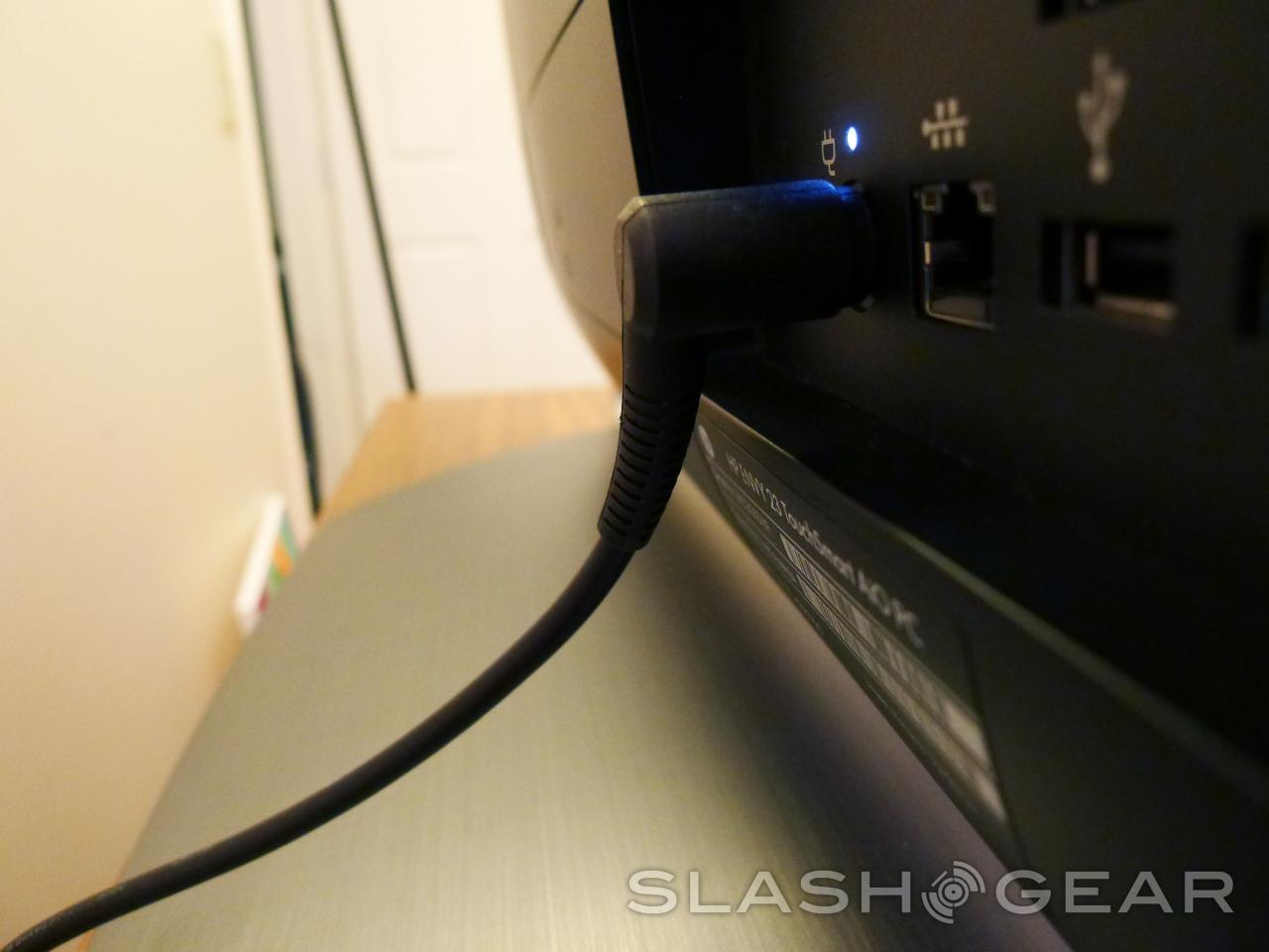 Sadly, the computer comes with a power brick attached to the power cord. It's not too big of a deal, since most electrics come with one anyway, but all-in-one machines are supposed to be meant for saving space, so the power brick may be an unexpected surprise if you're interested in going with this model. The end of the cord (the end that plugs into the computer) sits at a right angle, so in order to plug it in, you have to bend the cable so that it's perpendicular to the wall, and then have it bend downwards to feed it behind your desk to be plugged into the outlet. It just make more sense if the connector was straight, or at the very least a 45-degree angle, which is actually gaining popularity with various cable manufacturers anyway.