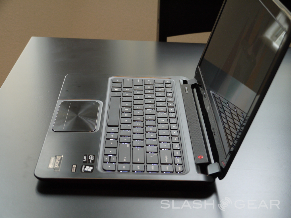 All in all the ENVY 4-1030us (that we have here) comes in under 4 lbs (3.86 to be exact) and only 0.78″ thick. We've seen thicker, but for $800 the package is quite sleek and decent. We'll talk about ports more below so for now the star of the show is the TrueVision HD front camera for Skype and video chat, and of course Beats Audio.