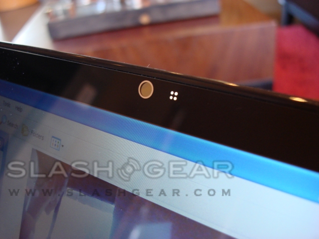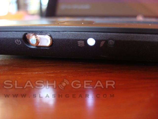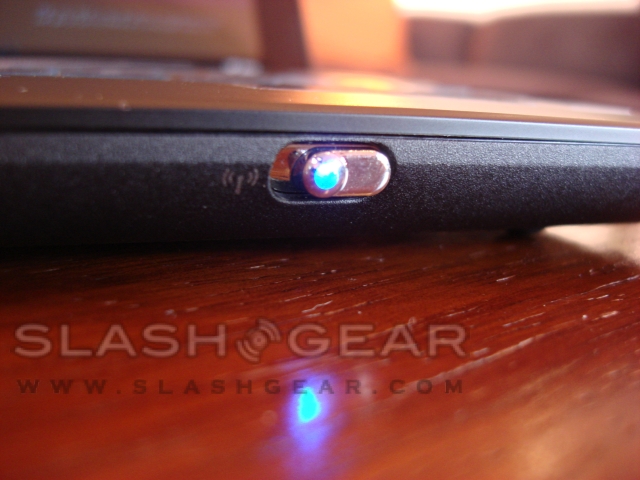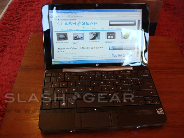 The front of the device is where you will find the power switch and Wi-Fi toggle with status LED lights, showing power and Wi-Fi connection status. The Mini 1000 runs Windows XP Home with Service Pack 3 rather than Windows Vista, which we have been seeing in the majority of newer computers. Inside just above the screen is a HP Mini Webcam for video chat.