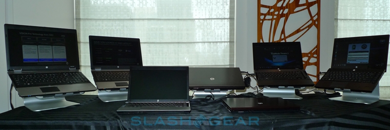 Meanwhile the HP ProBook 6450b and 6550b get Intel Core i3, i5 and i7 CPUs, 14- or 15.6-inch displays respectively, an eSATA/USB 2.0 combo port and WWAN options, and will arrive in June from $859. They have AMD counterparts in the shape of the HP ProBook 6455b and 6555b, kicking off at $779, with a choice of triple- or quad-core Phenom II, Turion II or Athlon II processors and optional ATI Mobility Radeon HD 530v graphics. HP reckon you should be able to squeeze out up to 24-percent more battery life from them versus the last generation of AMD-based notebooks.