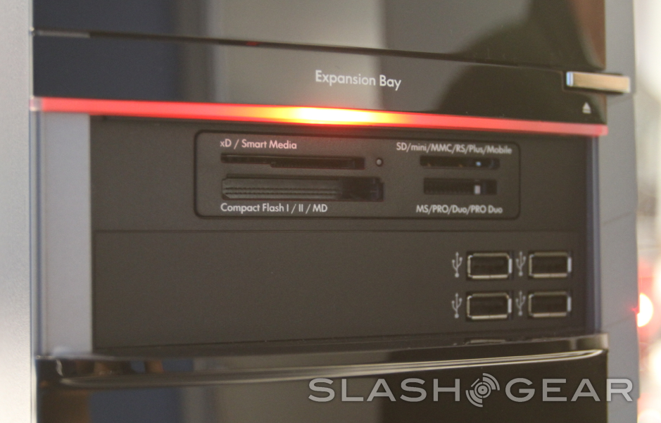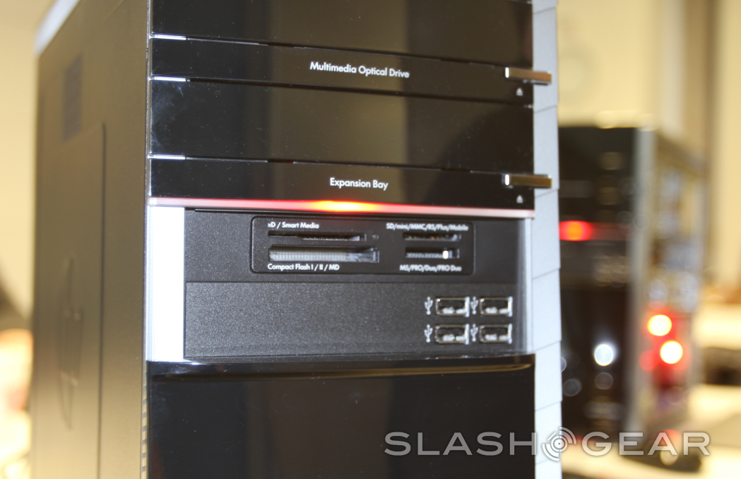 Earlier today we showed off the other piece of this double announcement in the HP Omni 27 all-in-one PC, and now it's time for the monster – the HP Pavilion HPE h9 Phoenix performance PC. This strangely endearing looking tower has your choice of Intel X79 or AMD 8-core processors and contains some rather lovely red lights under its black and silver exterior. Its innards are revealed to you through the side and gaming prowess throughout. This look like something you're willing to plop down the side of your desk for $1,149.99, a cool price coming on January 8th?