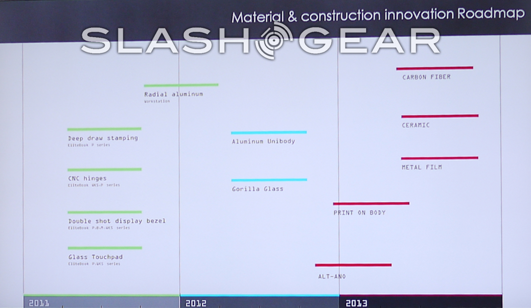 While on tour of the Houston Texas campus of HP, we were presented with a lovely little map of what they planned on adding to the roster for their EliteBook line in the near future. This map was shown on what's called HP's Tour of Elite, and we've been releasing bits and pieces of it all week long. What you'll see here is a short set of items already existing in HP's EliteBook line as well as some radical futuristic techniques and materials as well. Look like the oddness to you?