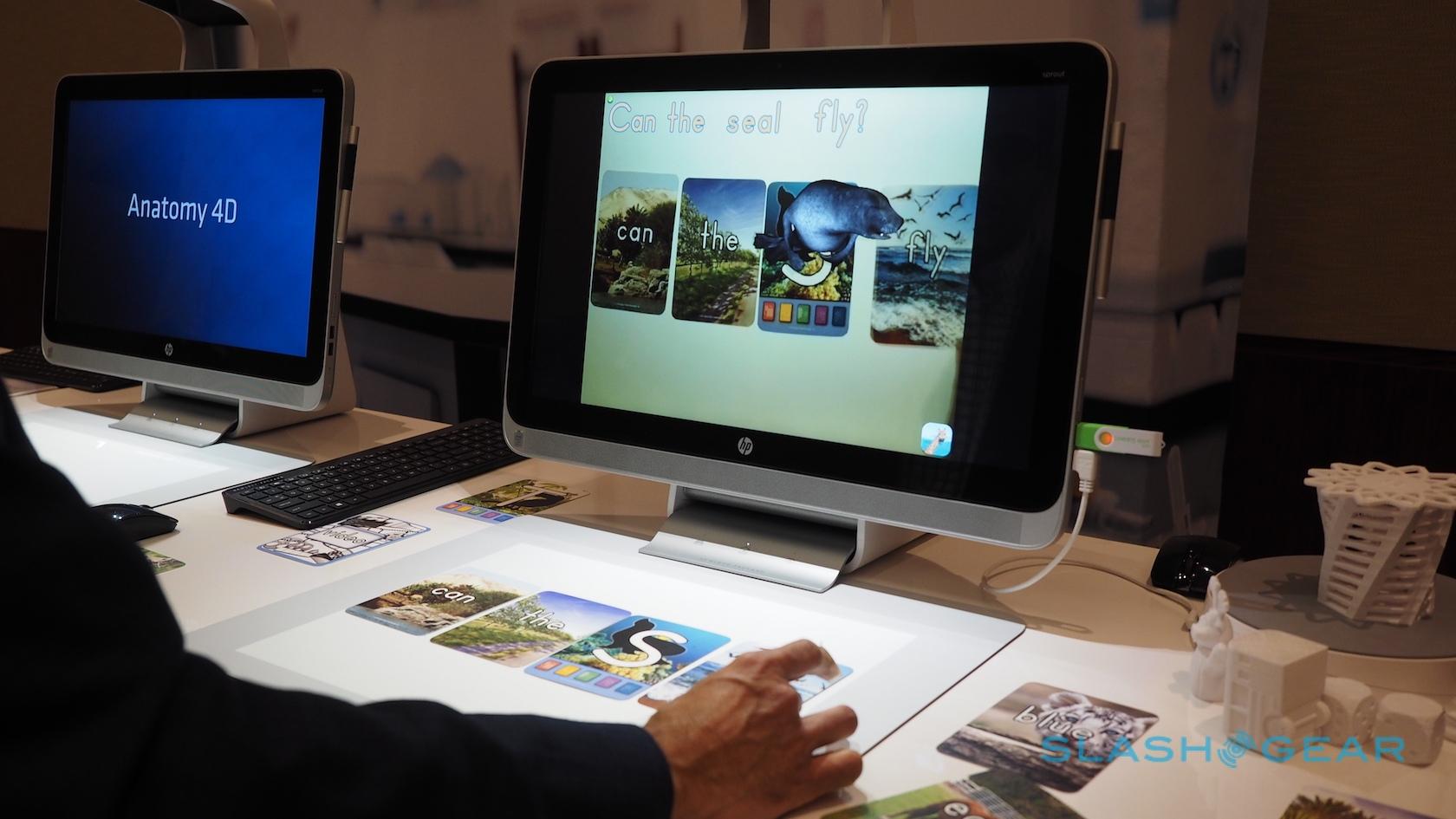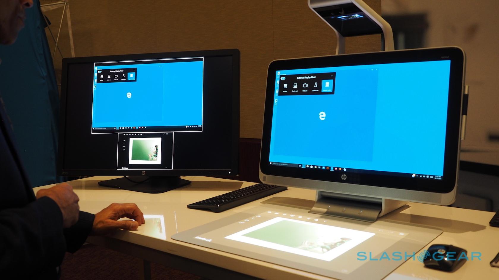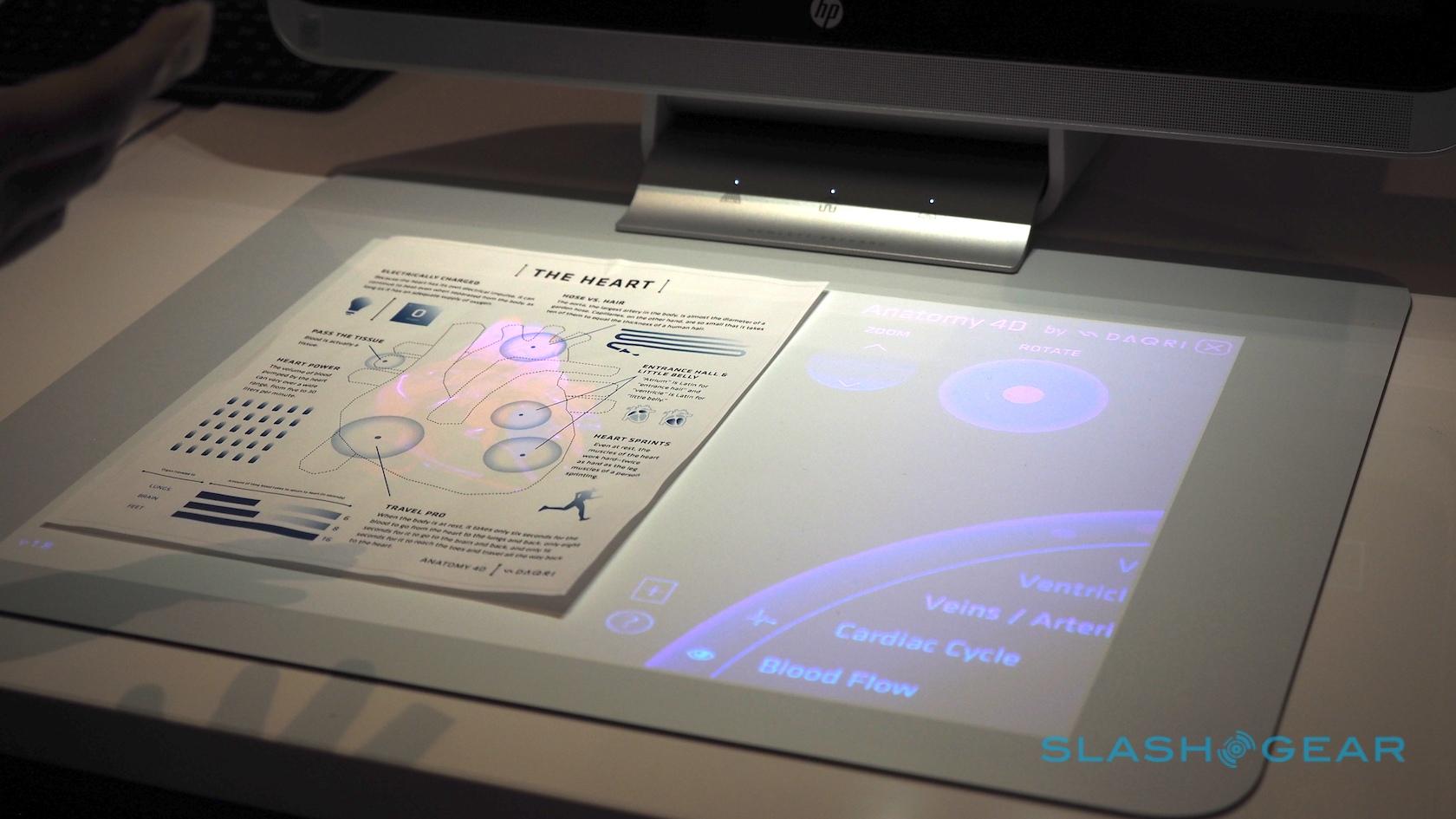 As you'll see in our hands-on photos above and below you'll see a mat up in front of this device. This is the HP Touch Mat, a touch-sensitive piece of equipment that allows you to work with and adjust the images you're working with on your display.