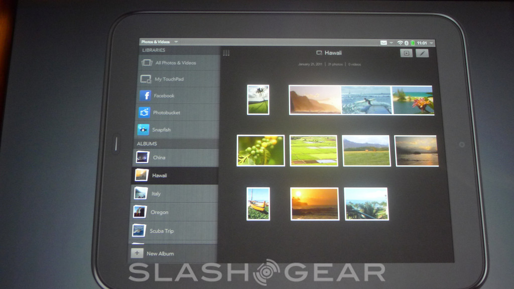 The TouchPad also supports video calling with a front-facing camera, and the new photo and video albums are now connected and offer integrated comments from online. HP has carried the Beats Audio tech over from its notebooks to the TouchPad, to improve the sound quality, and the TouchPad can also wirelessly print documents, photos and emails to the company's range of wireless and networked printers.