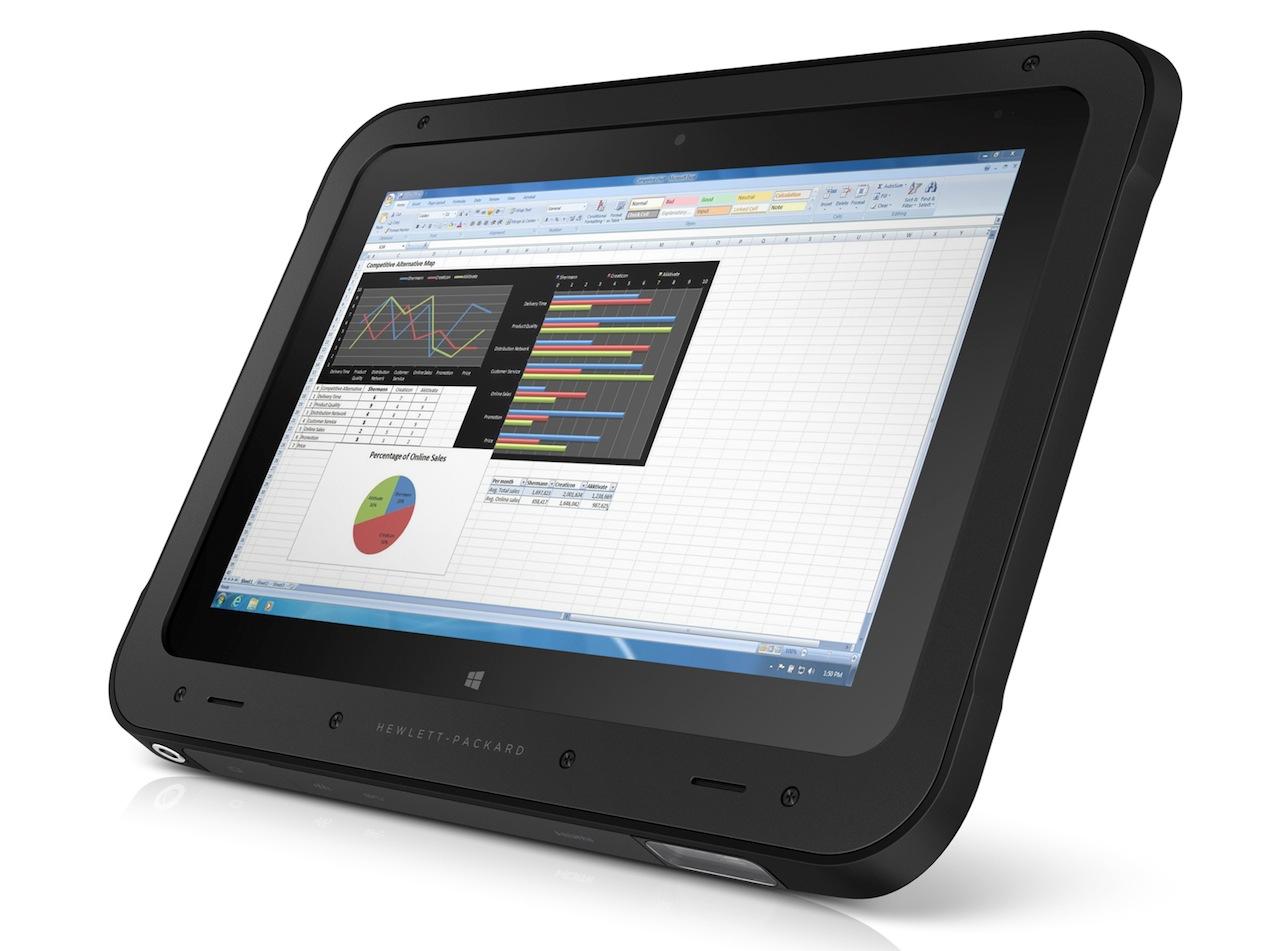 The HP ElitePad 1000 G2 Rugged Tablet is similar specific, with an IP 65 dust/water-proof casing, MIL-STD 810 toughness, and a 20hr battery.