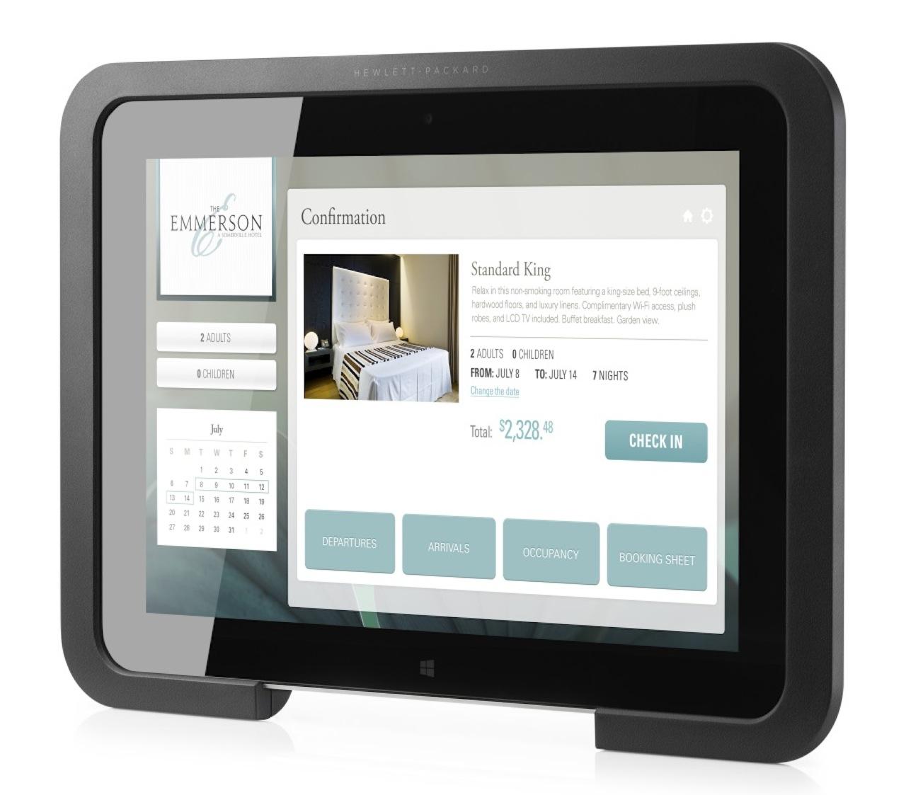 Meanwhile, there's the HP Pro Tablet 408 G1, an 8-inch Windows 8 slate running an Atom processor, and the HP ElitePad 1000 G2 Healthcare tablet, which has an antimicrobial casing and meets IP 54 specs. It includes a hospital-friendly integrated barcode scanner.