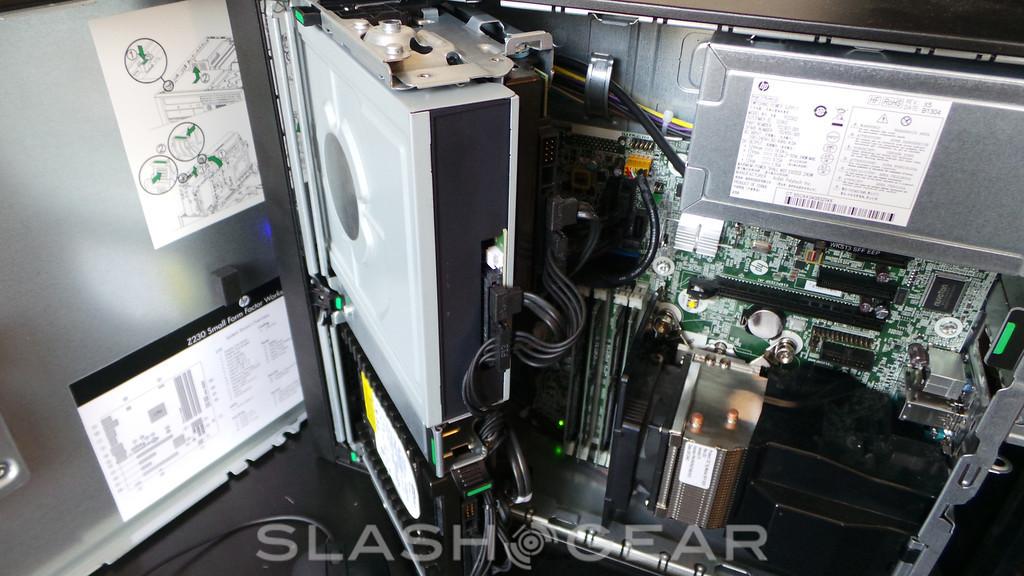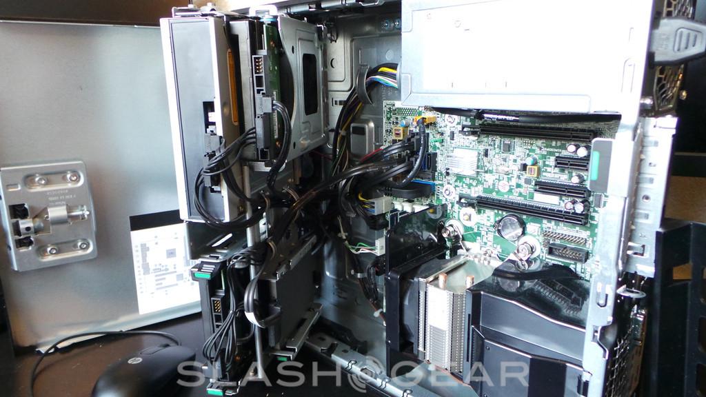 Getting inside this machine is made simple with a single knuckle-sized latch. Pulling off this side panel shows off HP's notoriously easy-to-modify system in place, complete with green-tagged buttons, clamps, and levers that are pushed, pulled, or otherwise moved with ease when you want to change something up in the hardware department. We saw this system demonstrated on a variety of workstations all the way back at our HP Elite tour back in 2011, and HP is still going strong with all of their workstations like this one today.