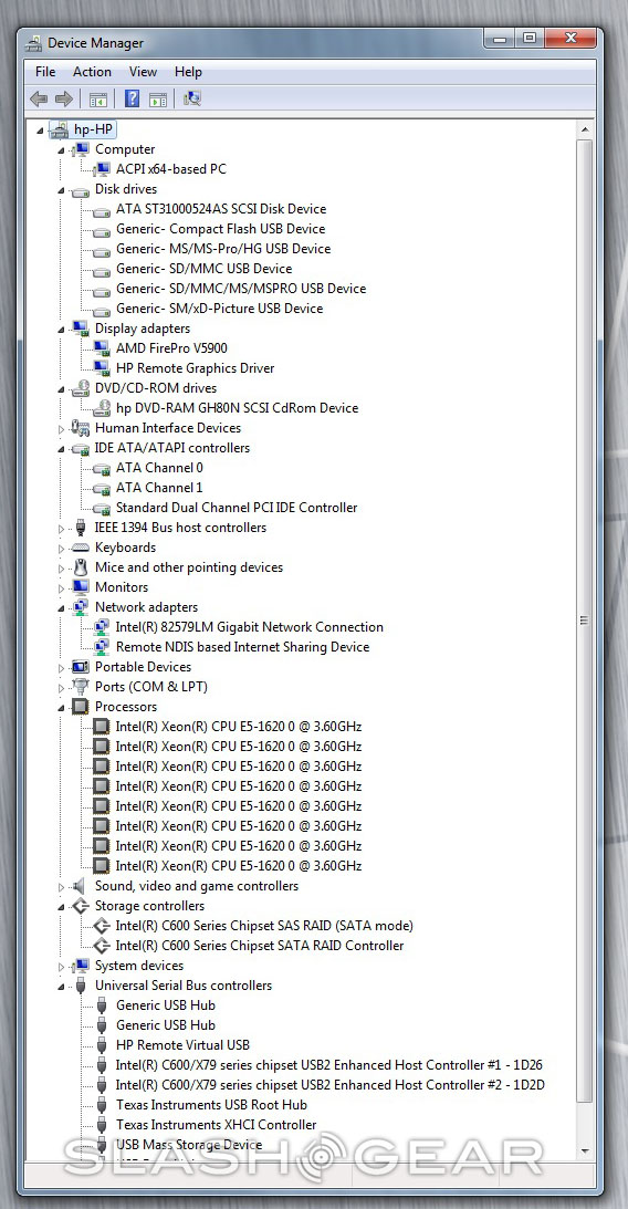 Our test unit came equipped with an eight-core Intel Xeon E5-1620 CPU clocked at 3.6Ghz, a relatively modest 8GB of memory and 1TB 7200RPM hard drive, and an AMD FirePro V5900 professional graphics card. Other additions include a multi-card reader and an extra guide and fan assembly for the graphics card. For these parts the total comes to $2762, up from the base price of $1169. A maxxed-out Z420 with the top end processor and graphics, an NVIIDA Quadro 5000 graphics card, 64GB of memory, huge SSDs and hard drives, integrated carrying handles and the like pushes towards $12,000.