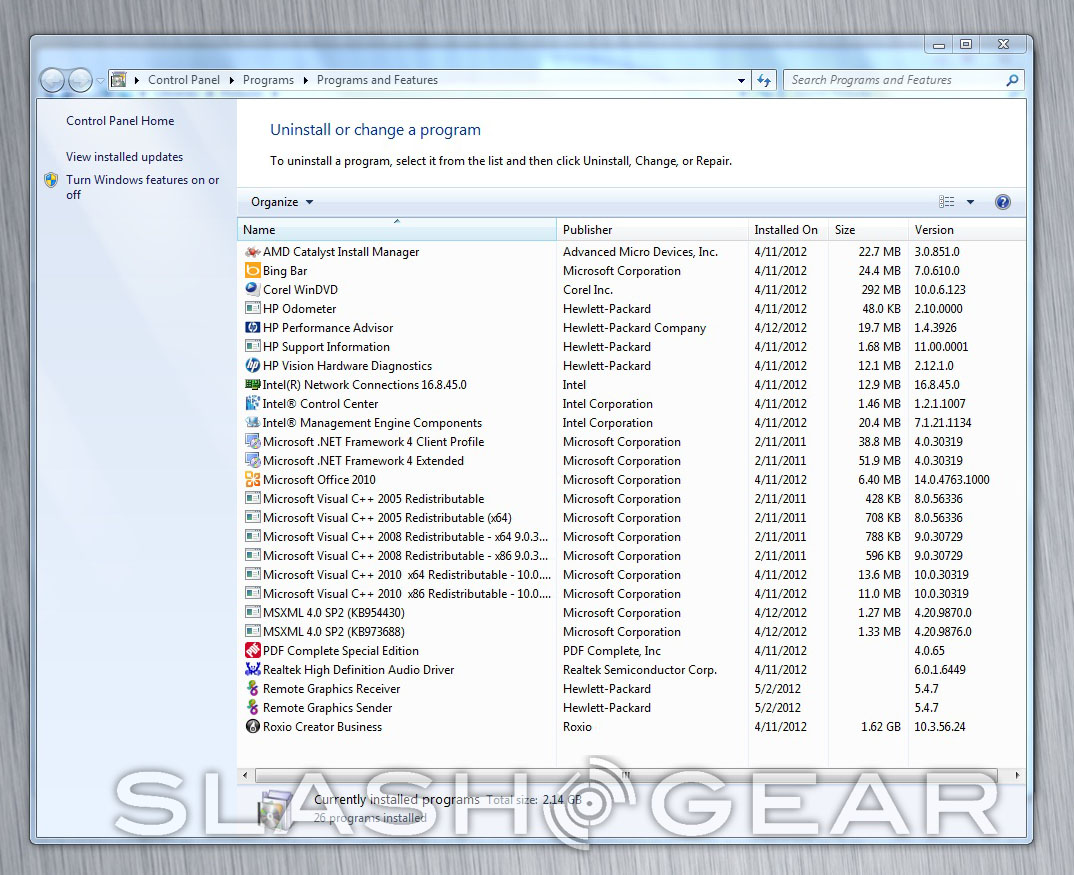 It's rare that we see Windows 7 unencumbered by extra software, but naturally workstation-class users aren't interested in bloatware. HP doesn't disappoint: the only non-essential programs that came with Windows 7 Professional 64-bit were the Bing Bar (sigh), a Corel DVD viewer, Roxio Creator Business and HP's proprietary Remote Graphics Software (RGS).