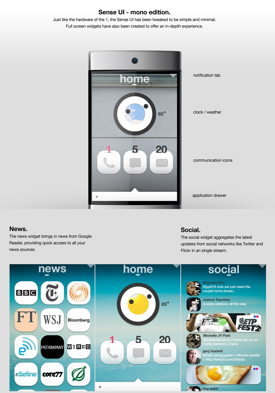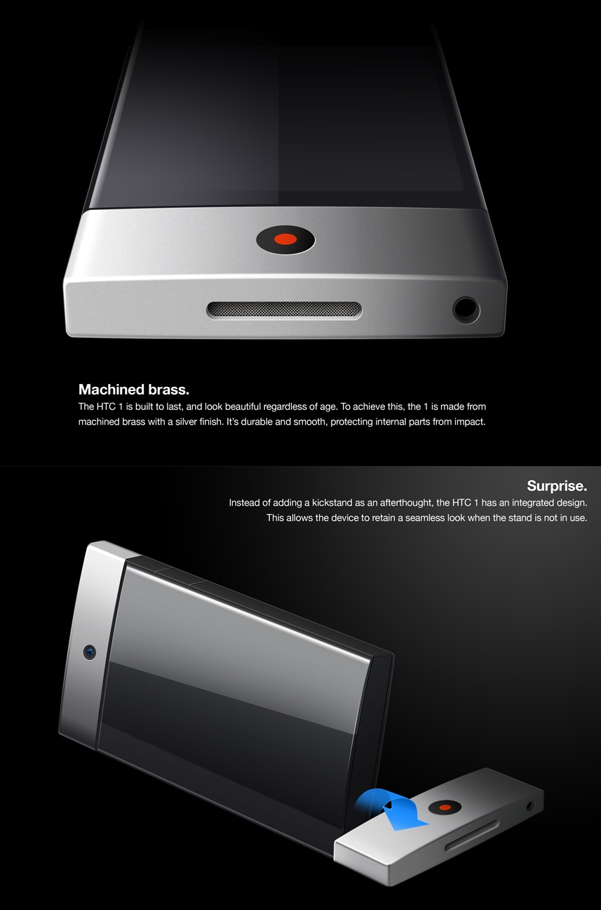 We're suckers for a good concept design here at SlashGear, and so we're hoping HTC are paying attention to Andrew Kim. His concept for the so-called HTC 1 is a premium Android phone that would be clearly differentiated from the company's mainstream models and better harmonize physical and software design. To that end, he's come up with a slick slab of minimalist machined brass with a rather striking interpretation of HTC Sense.