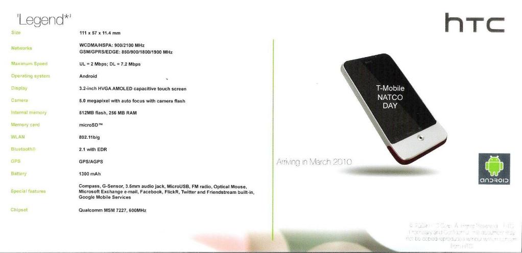 HTC's device line-up for the first half of 2010 has apparently leaked, courtesy of xda-developers, after a prototype brochure fell into the wrong hands. The range consists of five Android devices and three Windows Mobile handsets, including the so-called hero model of 1H 2010, the Android-based HTC Bravo. The Bravo will pack the same 1GHz Snapdragon processor as the HTC HD2 along with a 3.7-inch AMOLED touchscreen and HD 720p video capture. Full line-up details after the cut.Updated: We've contacted HTC for a comment, and unsurprisingly they're not confirming anything. "We cannot comment on speculation or rumour," HTC tell us, "but we're excited about our upcoming roadmap and encourage you to watch this space."