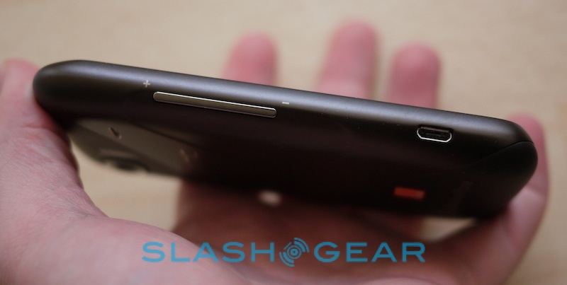 It's a solid piece of hardware, benefiting from HTC's unibody-style manufacturing process that gave us the Android-powered Legend. The brushed aluminum bezel continues around the back of the phone, with two soft-touch triangular plastic inserts for the camera and the battery cover. The latter is used as the antenna, as with the Legend, snapping off to reveal the SIM card slot and, held in with a plastic bar, the battery. Microsoft dictate what buttons a Windows Phone 7 device must have, so the HTC 7 Mozart gets a volume rocker on the left-hand side (above a microUSB port), power/standby button on the top (next to a 3.5mm headphones socket), and a two-stage camera shortcut on the lower right-hand side. Underneath the display are touch-sensitive, backlit back, Start and search keys, while a multicolor status light is hidden behind the earpiece mesh.