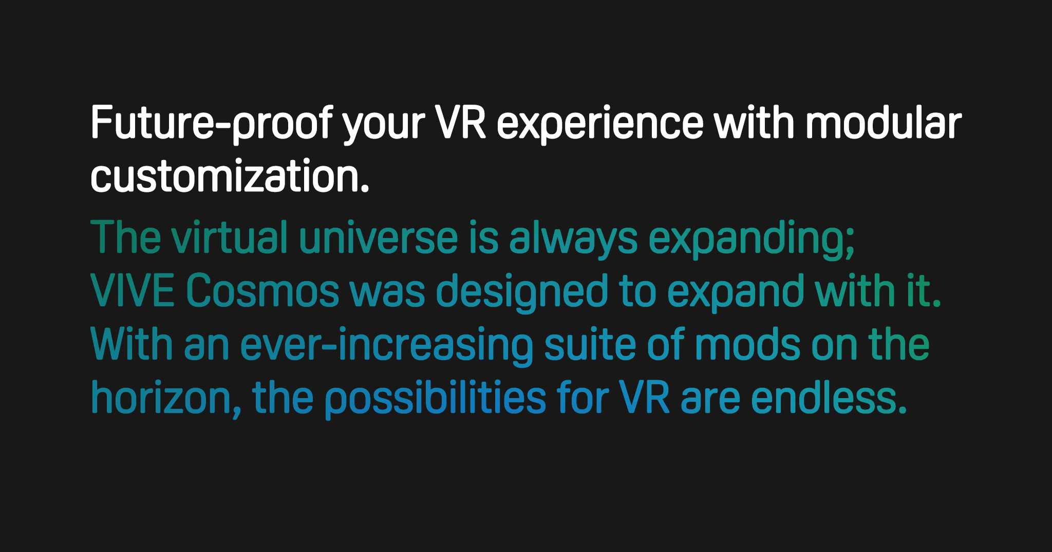 HTC's VIVE group decided to take a slightly less traditional route this year by showing the HTC Cosmos in January, skip the step where they release the product, then reveal a mod-able front panel unto which they've connected a pair of new cameras, bringing the total of four cameras on the outside up to six. I demand more cameras – more!
