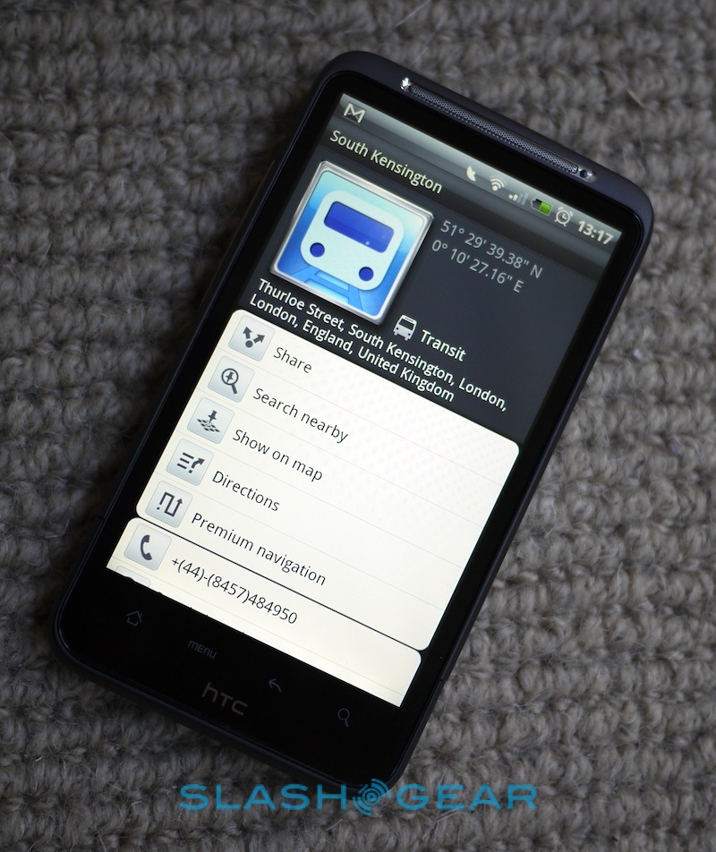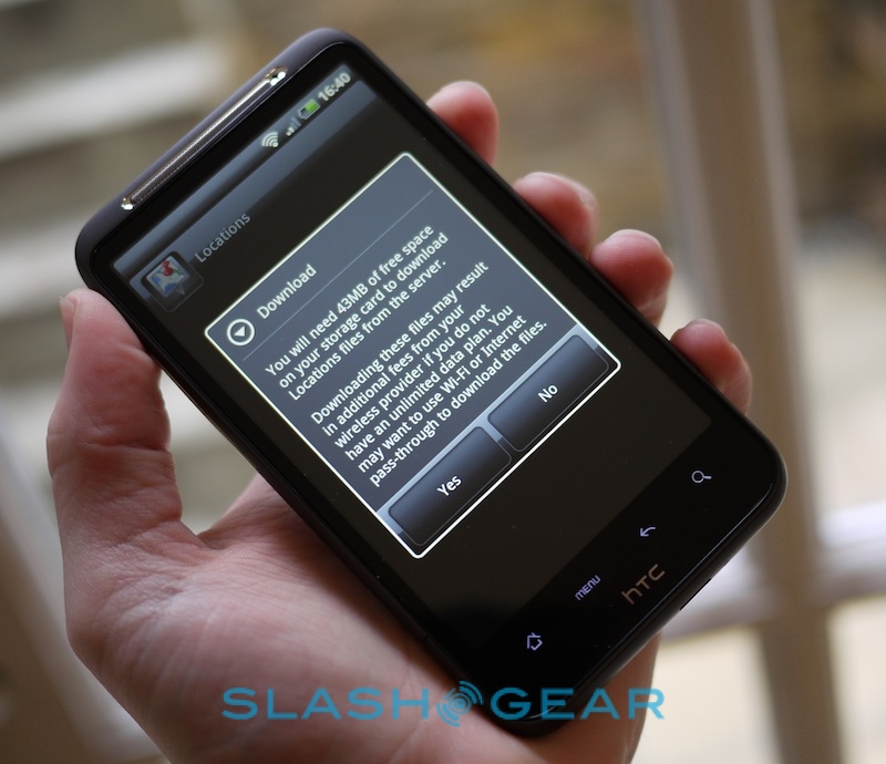A new UI is only half the story, however; HTC has thrown in downloadable maps, too, which removes the need for an internet connection while browsing. You'll need a microSD card in place to store them, but you can choose which geographies you'd like to include. We downloaded the basic UK data, but if you're going abroad and are worried about data costs you can easily grab content for your destination and leave the Desire HD's 3G turned off. It all works, though if you want navigation, traffic information, speed camera warnings or different voices, you'll need to pay for them.