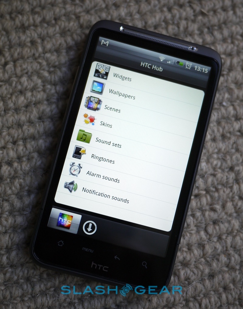 You can do a similar thing with applications, HTC using Sense – and the HTC Hub on the Desire HD itself – to access their own range of skins, widgets, apps, wallpapers, ringtones and other downloads. These can be flagged online (rather than a remote download triggered) so that the Desire HD reminds you to look at them on the handset itself.