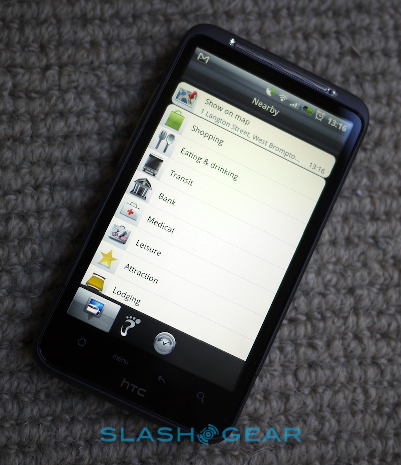 The biggest change is in HTC's navigation options, with a new Car Panel that turns the Desire HD into a serviceable PND replacement. Big, finger-friendly icons for setting destination, seeing what POIs are nearby, and leaving Footprints (HTC's GPS bread-crumbing system) dominate the display, and rather than kick you out when you hit the Home button it sensibly assumes you want to go back to the Car Panel (there's an Exit option to return to the regular Android homescreen). Incoming calls, meanwhile, are discretely flagged up at the bottom of the navigation screen rather than replacing the map completely. Our only complaint with the new UI is the dialler, which is the normal phone pad (complete with relatively small contacts and recent call listings) rather than a bigger layout for easier use when driving.