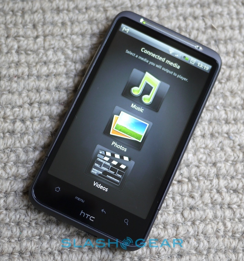 Unfortunately, there's no HDMI output to be had, which is a shame since that's been on the EVO 4G for some time now. HTC's register of supported file types is less comprehensive than we've seen on, say, Samsung's recent smartphones, too. You get WMV, MP4, AVI and Xvid video support, together with MP3, WMA, OGG, AAC and M4A audio (plus an FM radio), but we came across more files we couldn't play than was the case when reviewing, say, the Samsung Galaxy S.