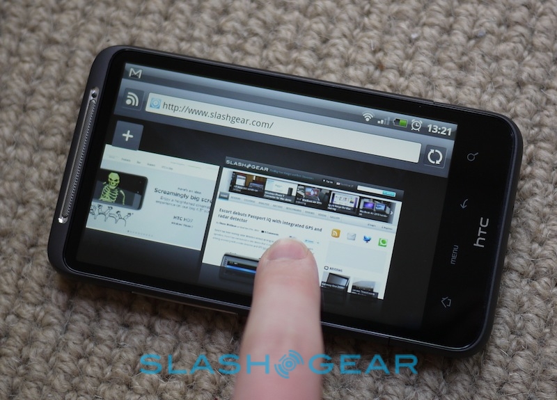 Android's WebKit-based browser is one of the best around on smartphones today, and the HTC Desire HD internet experience is no different. As you'd expect, it supports pinch-zooming and double-tapping triggers quick and accurate text-reflowing to better suit the screen. There's not a huge amount of zooming necessary, however, what with 4.3-inches on offer. The combination of the second-gen Snapdragon CPU and a healthy chunk of RAM keeps things moving swiftly, even with multiple windows running, and rendering is quick. You also get in-page Flash video and animations, since the Desire HD supports Flash Player 10.1.