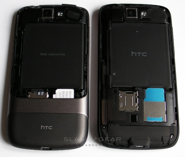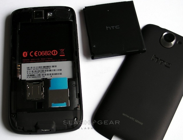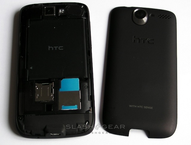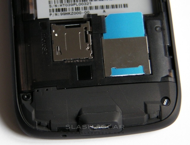 It's something you'll have to do if you want to switch microSD cards, though, which like the SIM are trapped by the battery itself. The Desire has 512MB of ROM and 576MB of RAM, and takes up to 32GB microSDs; there'll be an 8GB card in the retail box. The battery itself is a 1,400mAh pack, just like the Nexus One. Ports include microUSB on the bottom and a 3.5mm headphone/headset socket on the top, and in the box there's a set of wired headphones with call/music control buttons.