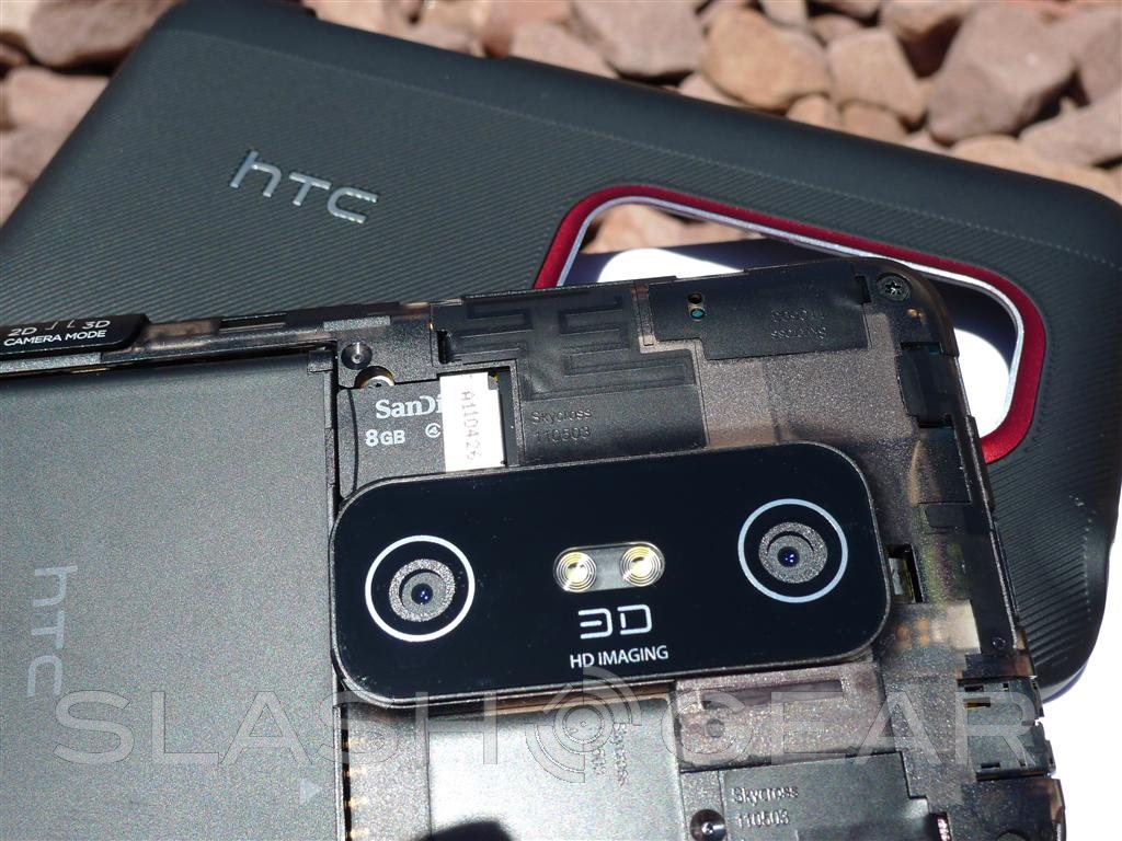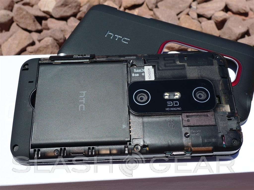 From my limited time playing with the HTC EVO 3D it does carry on that same amazing build quality HTC is known for, all while staying true to its older brother the original EVO. The overall design is obviously familiar and I think all you EVO fans will love this new addition to the family. It does have a few extra buttons that the EVO did not and those are that huge and hard to miss aluminum dedicated camera button, as well as the 2D/3D switch. Something tells me they want you to use this often because they make it hard not to notice. Do take note that the Micro USB slot for charging is also a MHL port but sadly we didn't get a converter like we expected and did with the Infuse 4G. Enough talk for now, check out all the photos below and let us know in the comments what you'd like to see in the full review.
