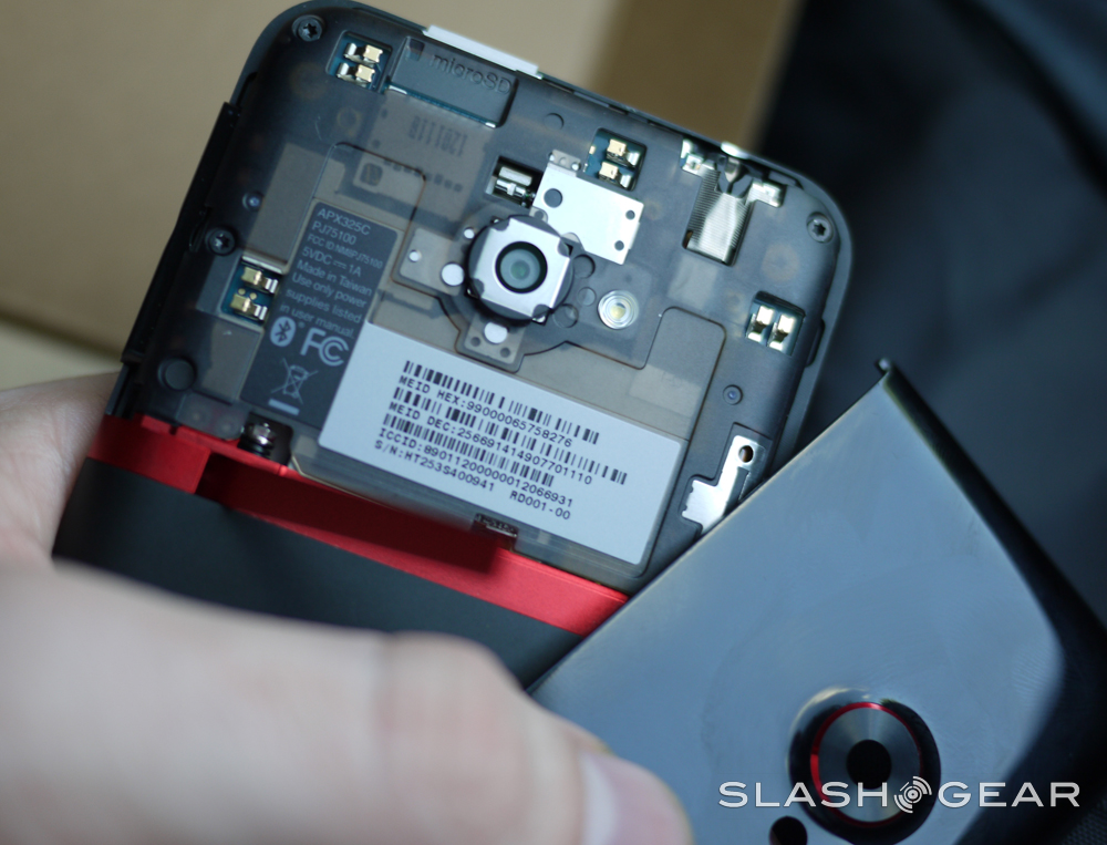The device you're looking at right now is essentially as thin as the HTC One S with as large a display as the HTC One X, and is extremely flat compared to the whole HTC One series thus far. This device feels much nicer and more powerfully built than any HTC EVO in the past and indeed does take on a lot of what HTC has promised for the whole HTC One series. The back panels include one with micro-arc oxidation like the HTC One S has and one that's hard plastic, these separated by a hardcore kickstand that's as strong as any we've seen on ANY device before – and no HTC One device has one (yet!)