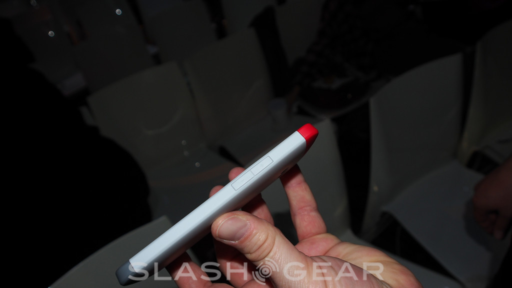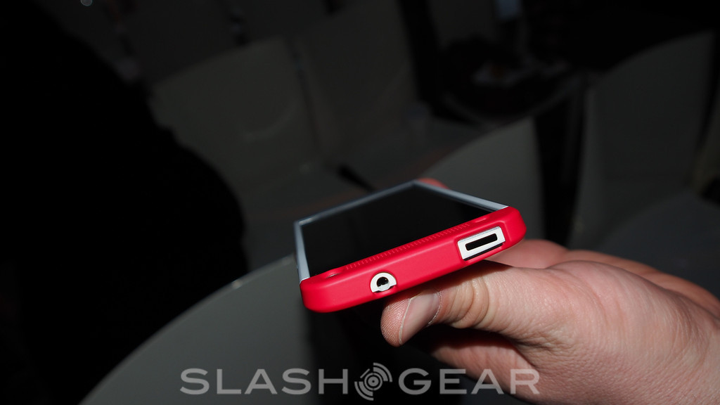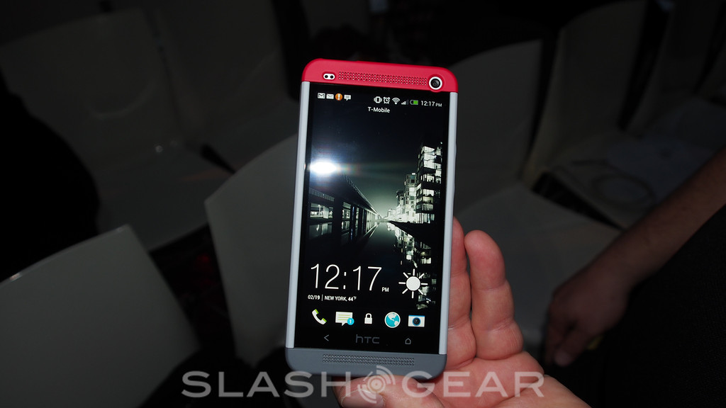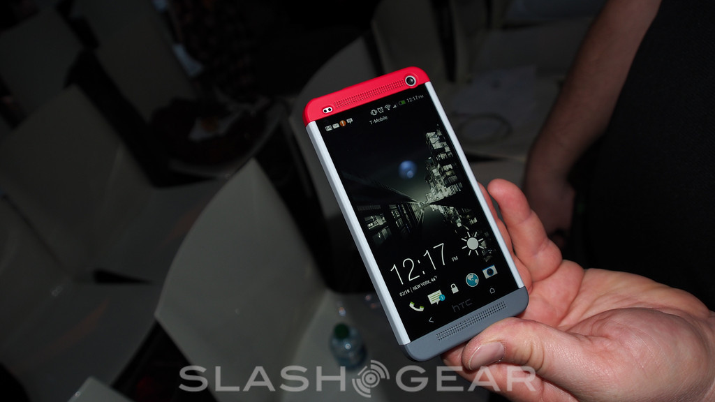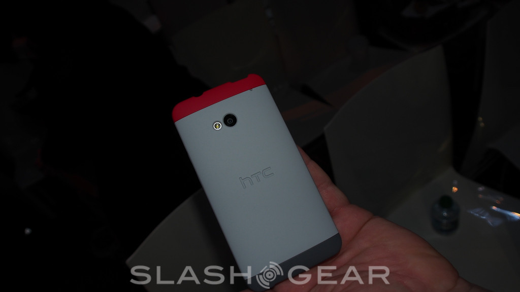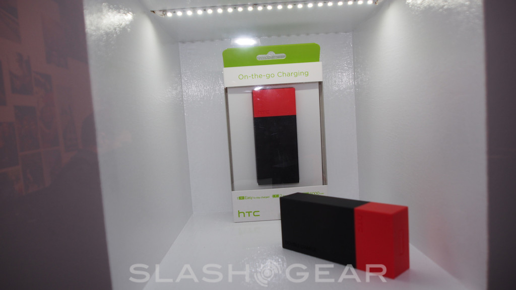 Some of the items we've seen before that were shown off again: the HTC Car StereoClip, Beats Earbuds, and the HTC Media Link HD for HDMI projection excellence. Then there's the two-tone case you'll see bringing on a rather bright strip of red to your HTC One experience. We're expecting a whole lot more in the way of bright and odd color combinations here soon.
