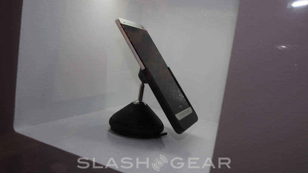 The rather sunflower-like swivel stand you're seeing here is made specifically for the HTC One and – for now – will only be available for this device. With the HTC DoubleCharge you'll get such a massive amount of battery life (in a big rectangular box) that you'll be able to charge your HTC One twice over. No more stranded in nowhereland with no uptime for you!