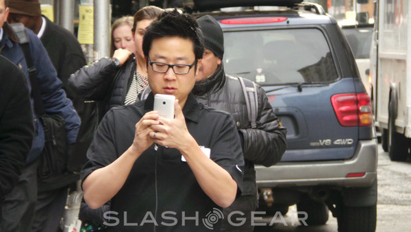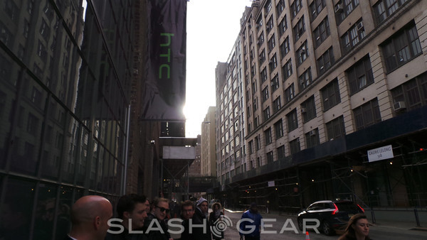 This morning we've had the opportunity to have the briefest of glimpses at the HTC One in the wild as what we must assume is an HTC employee took several photos of the line headed in to the official HTC One event in New York City. We'll be live this morning in both NYC and London as the HTC event appears in just under an hour, but for now – here it is! This device has been showing up in bits over the past couple of weeks and we expect it to be pushed in full throughout the day.