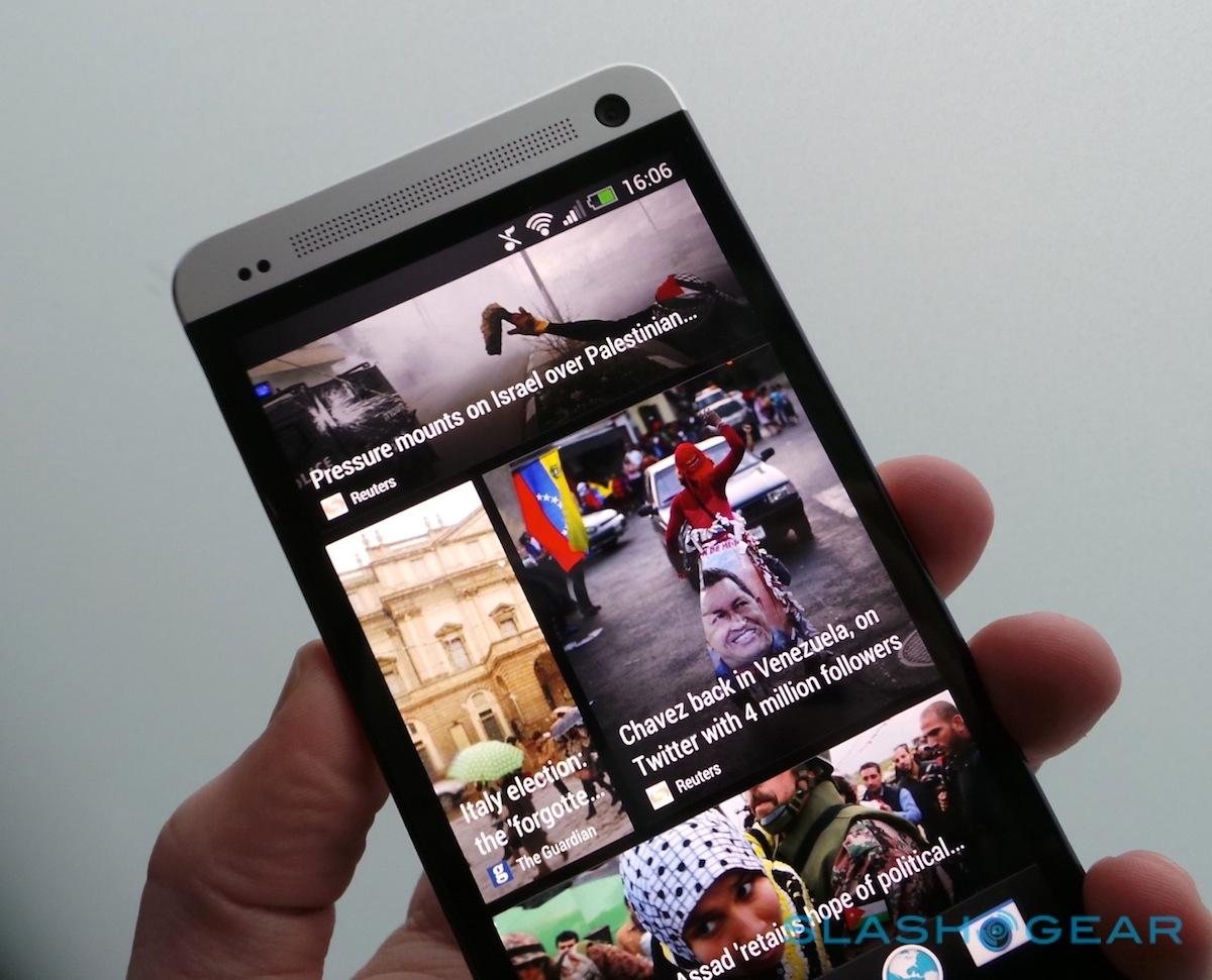 There's a combination of local and server-side processing going on to make BlinkFeed work smoothly. HTC is sifting through 1,000s of content providers in each geographical region – One owners will be able to pick either which categories they want to see, or which providers, or both – with display order using a mixture of chronology and an algorithm that spots interesting or important stories to include. Only the image and the headline is downloaded initially, to save data (BlinkFeed also favors against articles with no image), though HTC is working on offline caching for those times you're in the mood for a data snack but don't currently have service.