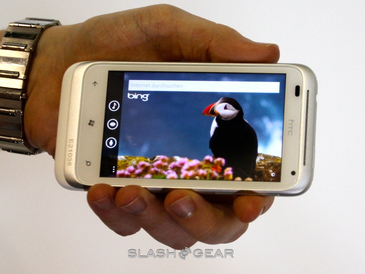 Build quality, as we've found with all of HTC's unibody devices, is strong and creak-free. The lower white panel slides off to reveal the battery and SIM card slot, and there's a dedicated camera key, microUSB port and 3.5mm headphone socket. Size-wise, the 120.5 x 61.5 x 10.9 mm handset is more compact in the hand than the first-gen HTC Trophy, despite offering the same screen size. It also has better viewing angles.