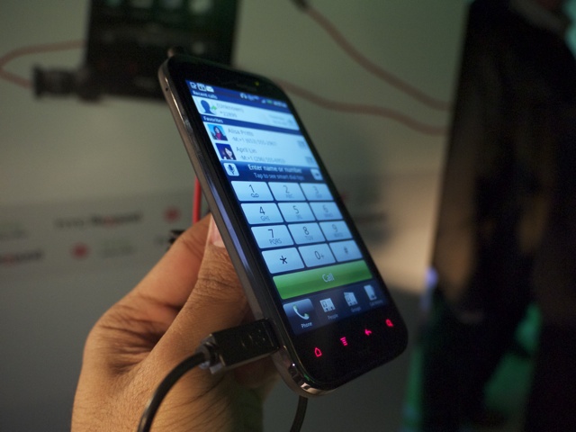 Unfortunately, the company wasn't showing off those custom Beats earbuds for our demo, and we had to settle for an over-ear pair — naturally, we rocked a little Dre on the thing. As you'd expect, the sound is extremely bass-heavy. You can thank Beats for that, no doubt. The music continues to play, even as you launch other apps, which can be bit a distracting when you're trying to stream a video using the phone's LTE radio. For the record, that video loaded quite quickly.