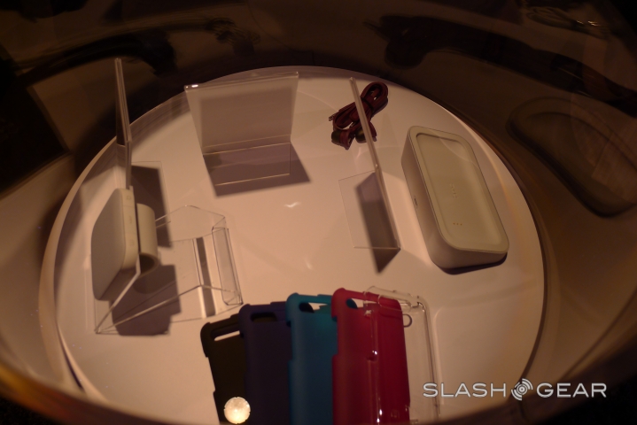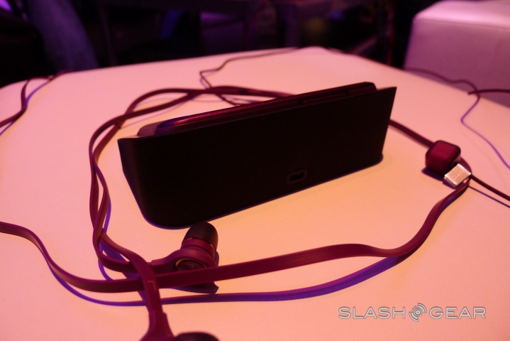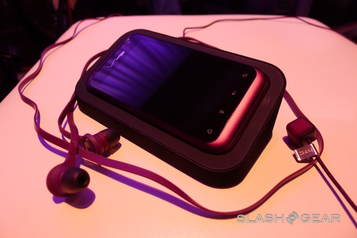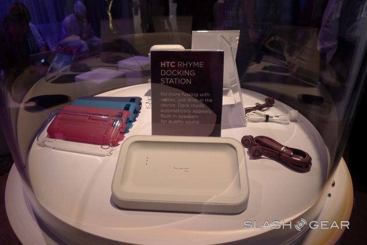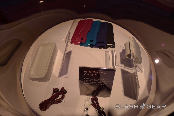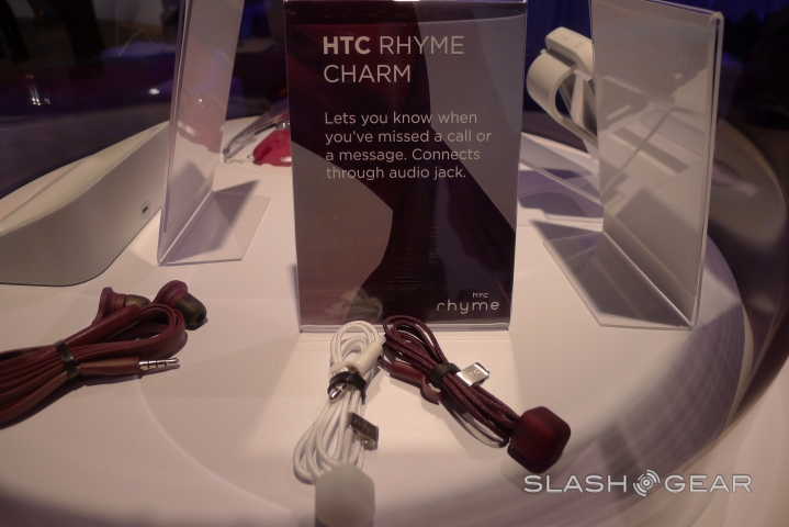 You can't argue with HTC's consistency, either: the wired stereo headset matches, in the same shade of purple, as does the Bluetooth headset and even the odd little "charm" that blinks discretely to warn you there's a call or message incoming. It's eye-catching, but it's hardly new technology; we've seen light-up keychains before, though that the Rhyme's slots into the headphone jack for safe-keeping is neat. Still, the desk cradle is likely more useful overall.