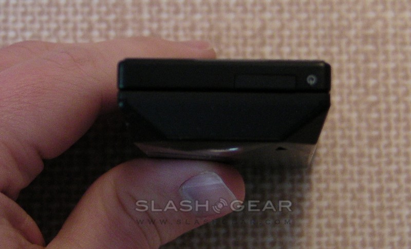 Underneath the back panel (which is surprisingly tough to remove) sits the 1,000mAh battery and, after you remember to thread the cord through a tiny hole in the panel itself, a lanyard hook, but no SIM or memory card slots. These, instead, are stacked under a pop-up panel on the reverse side of the sliding top section.