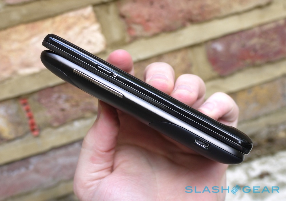Opinions proved divided when we asked people for their favorite, some liking the waifish construction of the Samsung and others preferring the reassuring solidity of the HTC. It's worth noting that the more curved chassis of the Sensation helps disguise its size and actually makes it feel smaller face-on than the Galaxy S II. It's creak-free, too, and unlike the fiddly pop-off doors of previous HTCs, the entire rear panel unclips and the guts of the smartphone lift out to allow access to the battery compartment, SIM slot and microSD slot.