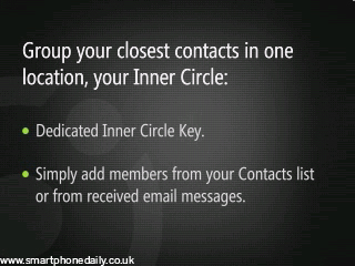 According to SmartphoneDaily, the Snap's keyboard lives up to its BlackBerry-besting promise. They describe it as "genuinely good" and "better, possibly, than [the] Nokia E71", itself a well-respected handset. Inner Circle gets a dedicated key on the full QWERTY.