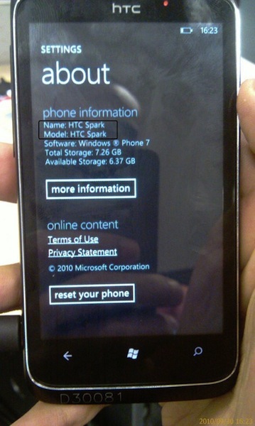 HTC Spark Windows Phone 7 Smartphone Leaks