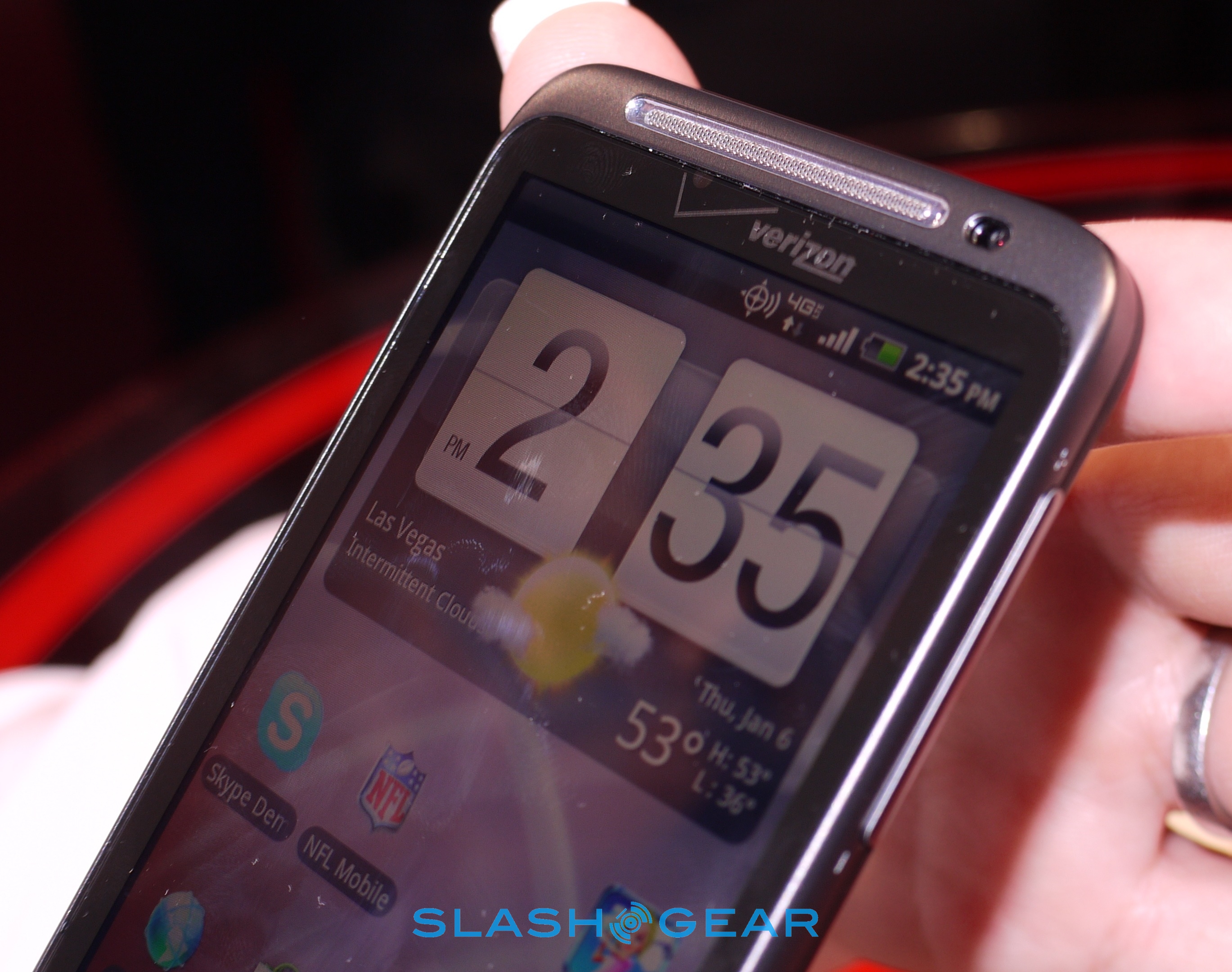 The device boasts a 1GHz next generation Snapdragon processor that is noticeably faster than its current-gen counterpart. Around back is a EVO-like kickstand that hides the Dolby Surround Sound speaker.