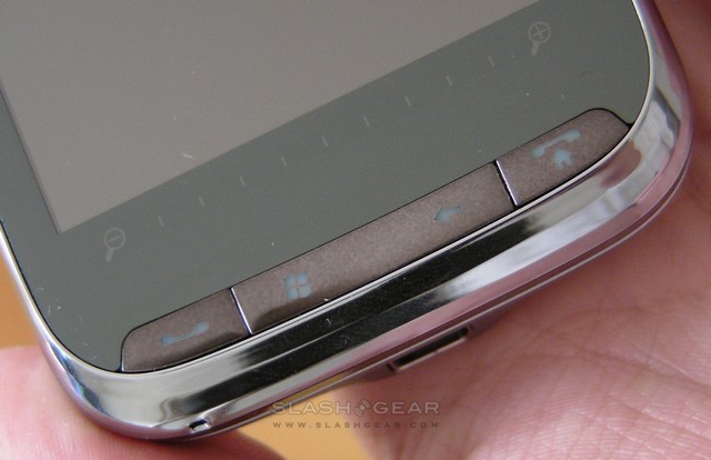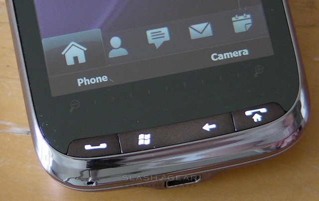 The other controls pale in comparison to the keyboard, with the main row of four under the screen – call, Windows, back and end-call – small and with hard to read legends. As with the Diamond2, sandwiched between display and keys is a touch-sensitive zoom bar, used in the Pro2's browser and image viewer. It allowed for a less-jerky zoom than we found the Diamond2 capable of, though we'd still like to see it implemented in more apps. Why can't we slide through tabs in TouchFLO 3D with the zoom bar, enlarge text in the messaging app or fast-forward through media playback?
