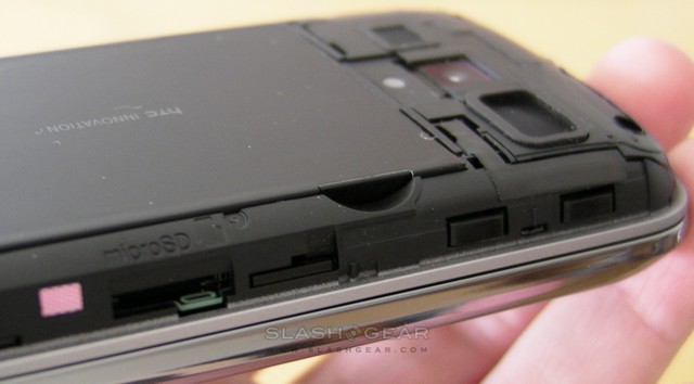 Perhaps the missing socket is a casualty of space shortages, but the upshot to that isn't a compact handset. At 116 x 59.2 x 17.25 mm (4.57 x 2.33 x 0.68 inches) and 187.5g (6.61oz) this is a hefty chunk of smartphone; you can carry it in a front trouser pocket, certainly, but you'll definitely know it's there. HTC have attempted to save some weight with a plastic back cover, but it ends up being the cheapest-feeling aspect of the Pro2 and frustratingly can't be easily removed without first whipping out the stylus. At least the microSD card slot is accessible without then needing to remove the battery.