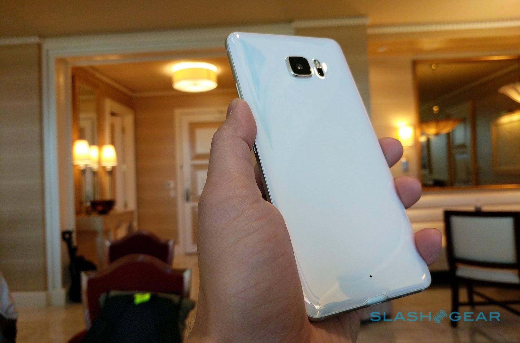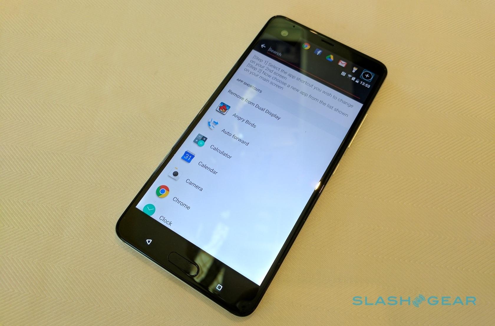 It also has two displays. The main screen is a 5.7-inch Quad HD panel, but it's topped by a second "Dual Display": a thin strip that offers app shortcuts, quick-dial contacts, and notifications. It's next to a 16-megapixel UltraPixel camera, while on the back is a 12-megapixel UltraPixel 2 camera with both laser and phase-detection autofocus, OIS, and 4K recording.