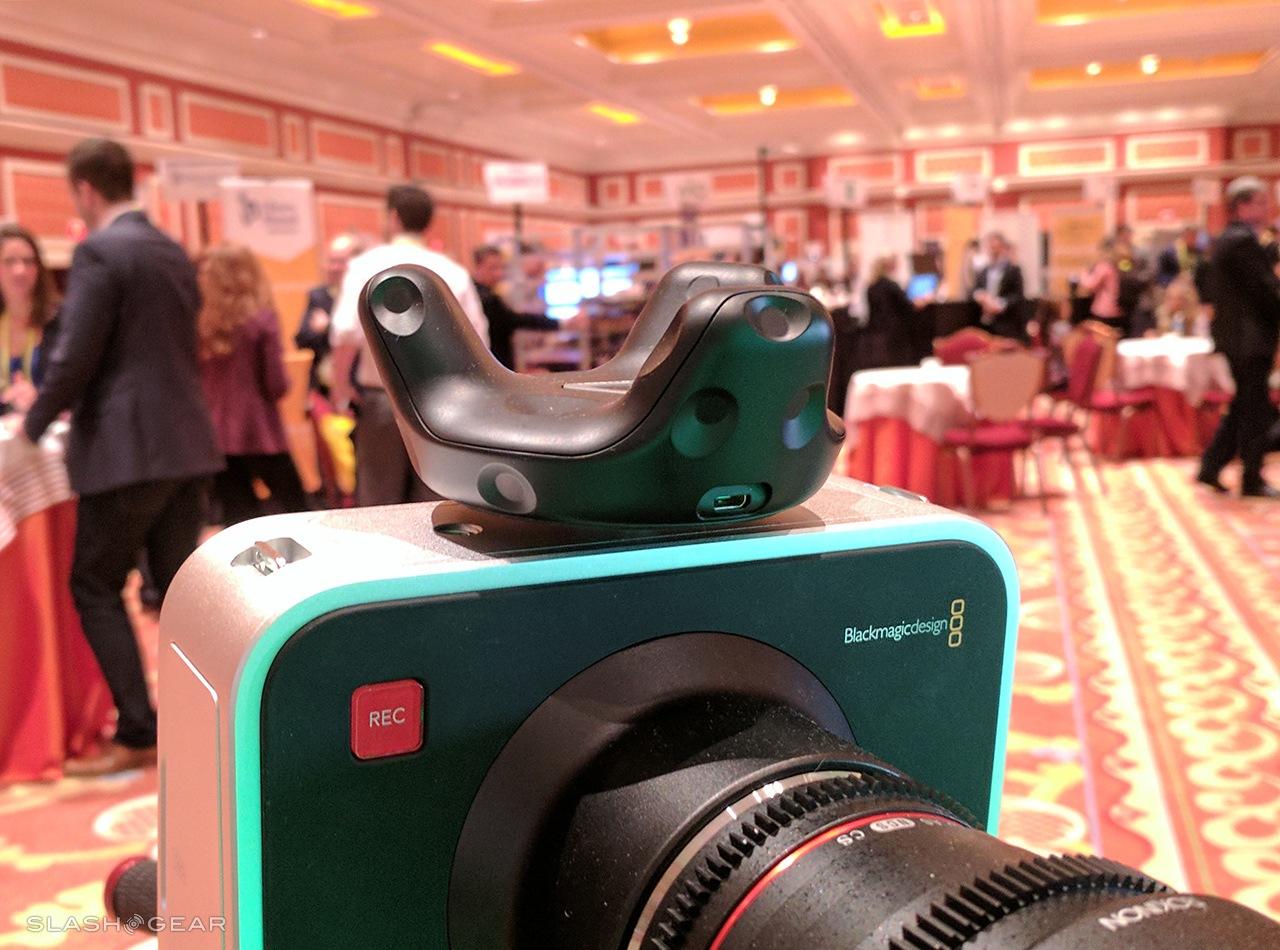 We're seeing the tracker attached to a 4K Blackmagic camera here to position the camera in the VR game set up to demo. The user is allowed to play the game in virtual reality with two controllers, as they're meant to, while the tracker does the job the tracker should. The job the tracker is doing is the same job a third controller would do otherwise – this tracker fills the gap.