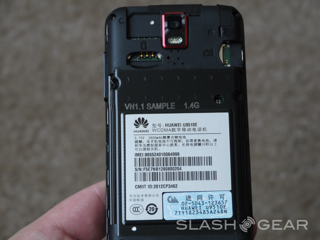 This device has 8GB of ROM, 1GB of RAM, and connects to your computer or a wall charger with a standard microUSB plug. You've got an 8 megapixel camera on the back capable of 1080p video, there's a secondary camera on the front working at 1.3 megapixels capable of 720p video, and inside you've got Android 4.0 Ice Cream Sandwich right out of the box. The biggest reason this device should raise your radar is the processor, of course, it being a quad-core beast from Huawei itself coming in at 1.2GHz.