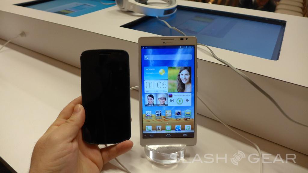 As usual Huawei's tweaked the Android user interface with their own skin, similar to Samsung's TouchWiz or LG's Optimus UI — but we'll need more time with it before we give you final thoughts. Good luck fitting this in your pants pocket and stay tuned for hands-on video coming soon.